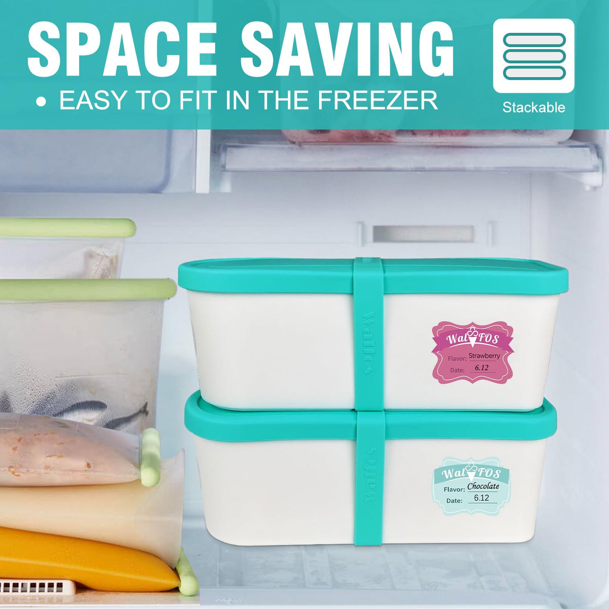 Walfos Ice Cream Containers - 1.6 Quart Each, Reusable Homemade Ice Cream Tubs With Silicone Lids, Stackable Freezer Storage Con