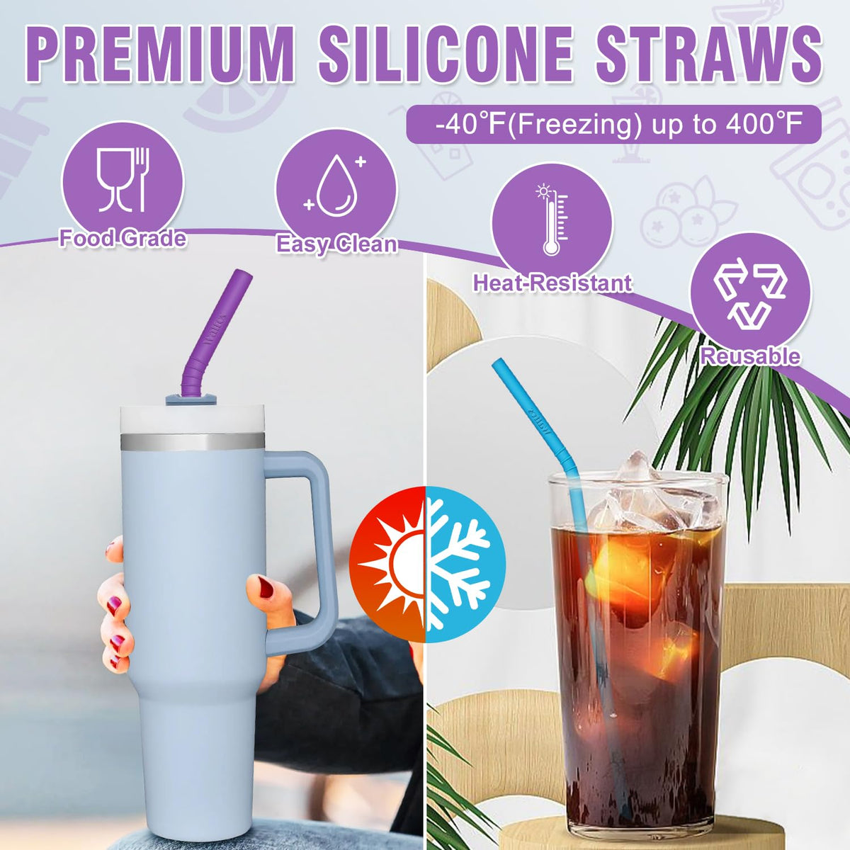 - Q: How many straws and cleaning brushes are included in the set? A: The set includes a total of eight straws: four large bendable silicone straws, four regular bendable silicone straws, and two cleaning brushes.