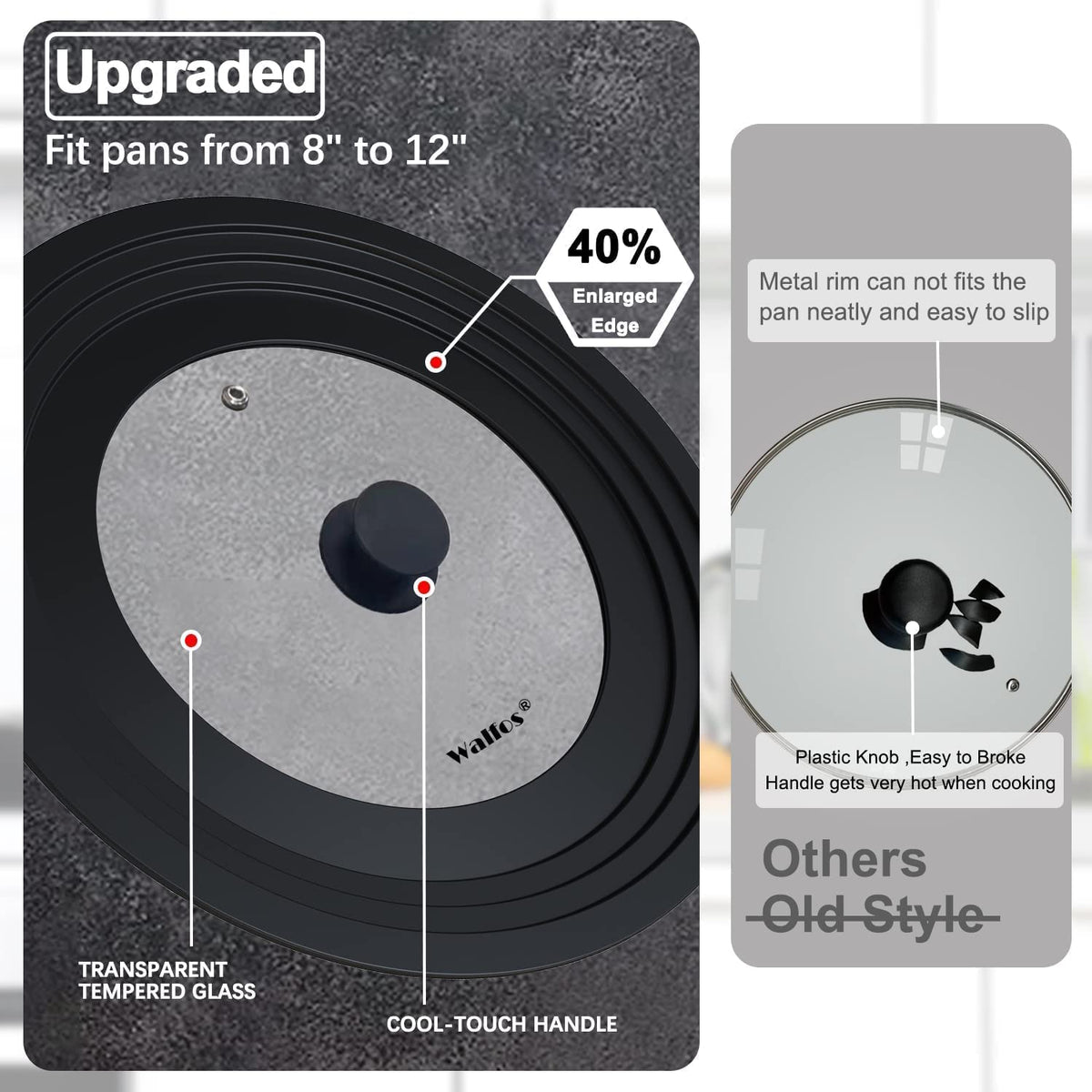Walfos Universal Pan Lid - Pot Lid For Pots, Pans And Skillets, With Unique Enlarged Heat Resistant Silicone Rim And Tempered Gl