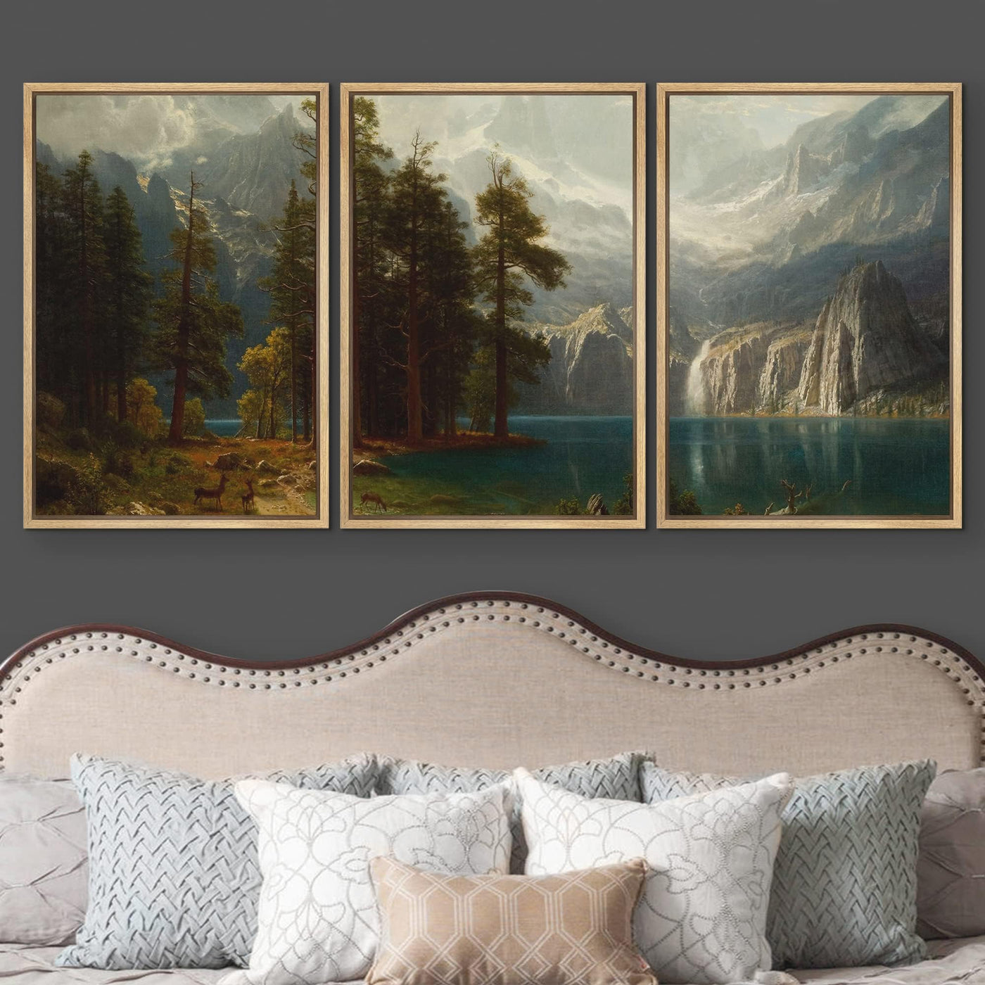 Wall26 - 3 Piece Framed Canvas Wall Art - Sierra Nevada In California By Albert Bierstadt Giclee - Modern Home Art Stretched And