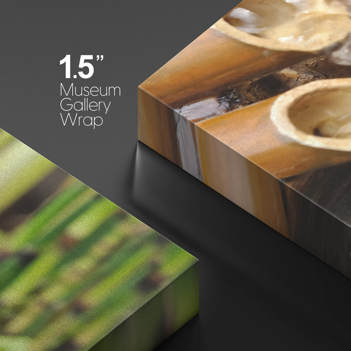 - Q: What features does the canvas print offer? A: The canvas print features high-quality printed artwork on durable, shrink-resistant canvas with 1.5 inch stretcher bars for a gallery-quality profile.