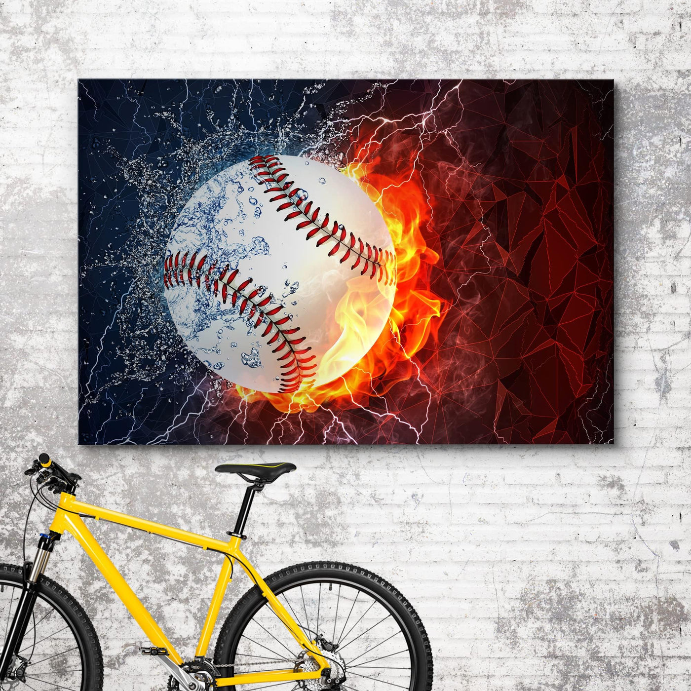 Wall26 Canvas Print Wall Art Elemental Water & Fire Explosion Baseball Sports Athletes Digital Art Realism Modern Scenic Dramati