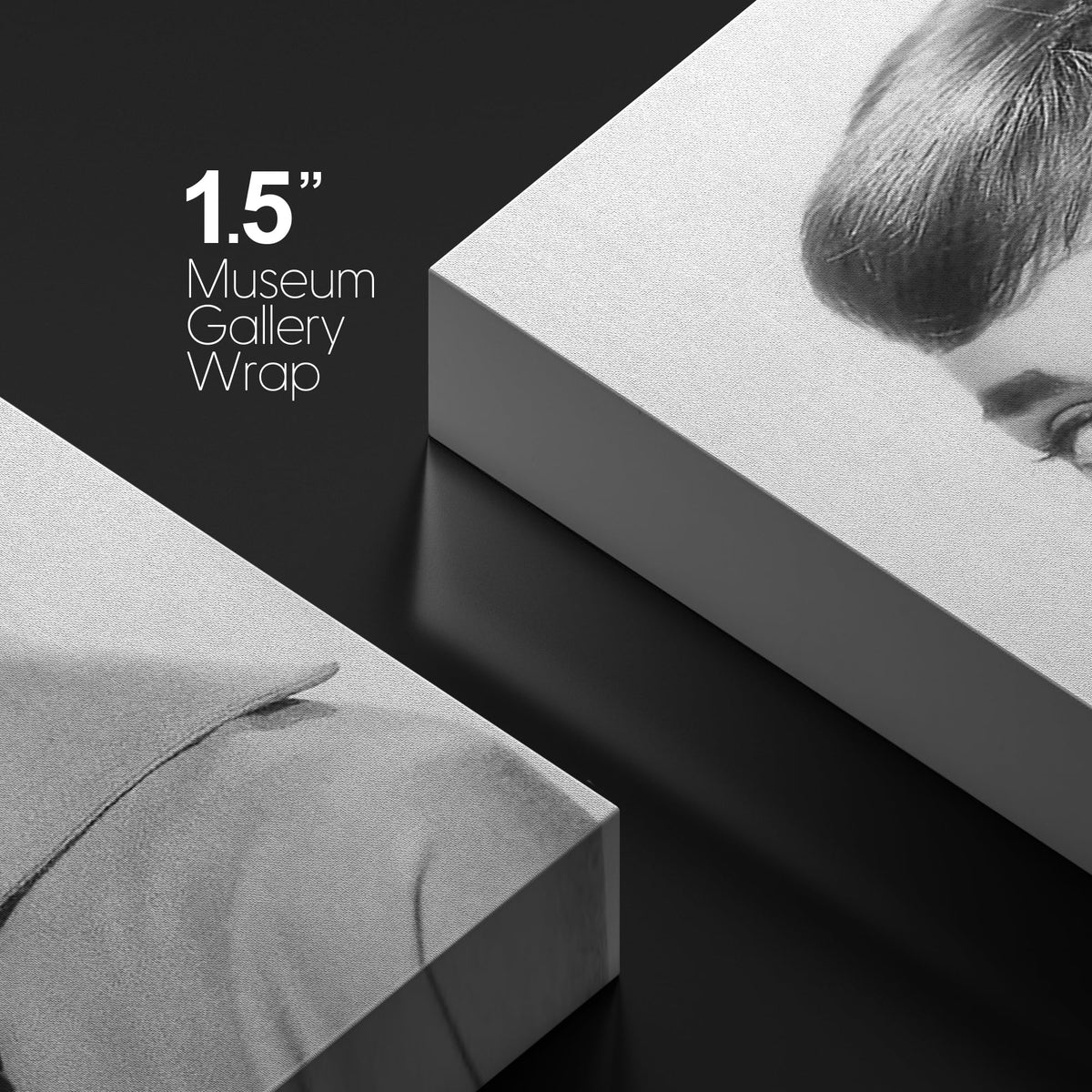- Q: What kind of art style does this canvas print represent? A: This canvas print features a black and white traditional portrait style, showcasing a famous celebrity actress.