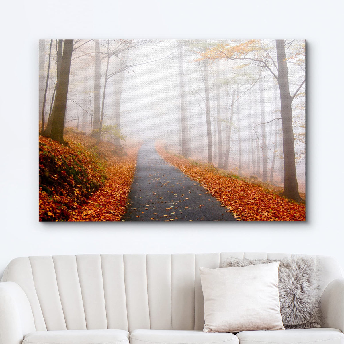 Wall26 Canvas Print Wall Art Foggy Autumn Forest Path With Orange Leaves Nature Wilderness Photography Modern Art Rustic Scenic