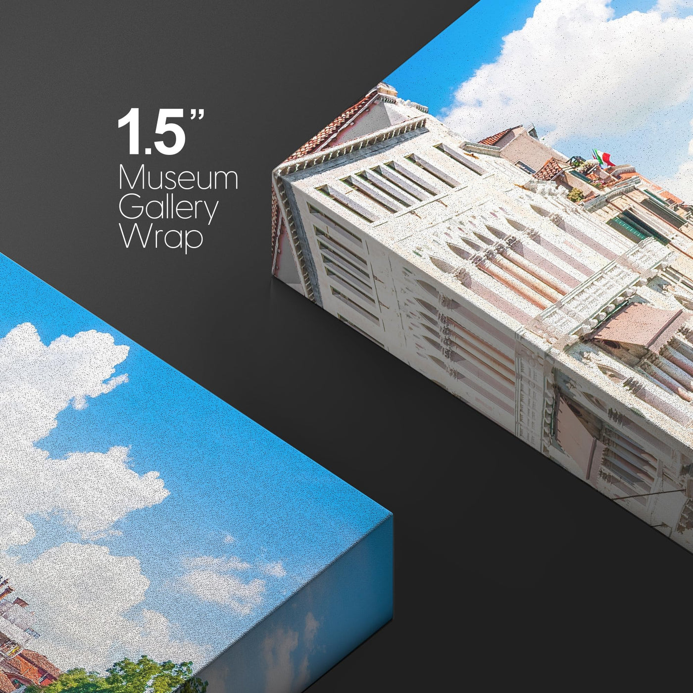 - Q: What is the thickness of the stretcher bars? A: The stretcher bars are 1.5 inches thick, giving the artwork a gallery-quality profile.