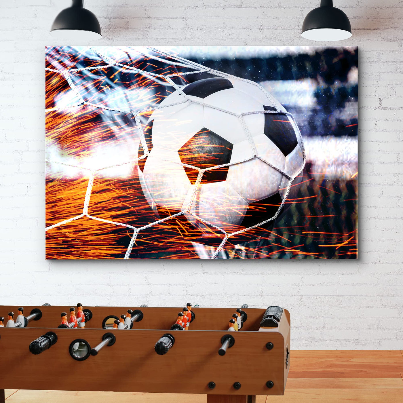 Wall26 Canvas Print Wall Art High Contrast Red Sparks Soccer Ball Goal Sports & Fitness Athletes Photography Realism Boy'S Bedro