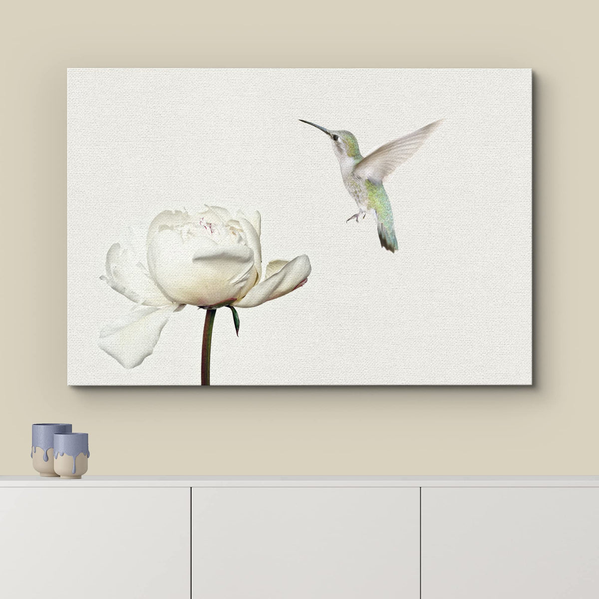 Wall26 Canvas Print Wall Art Hummingbird Flies On White Carnation Flower Animals Wildlife Photography Realism Rustic Scenic Natu