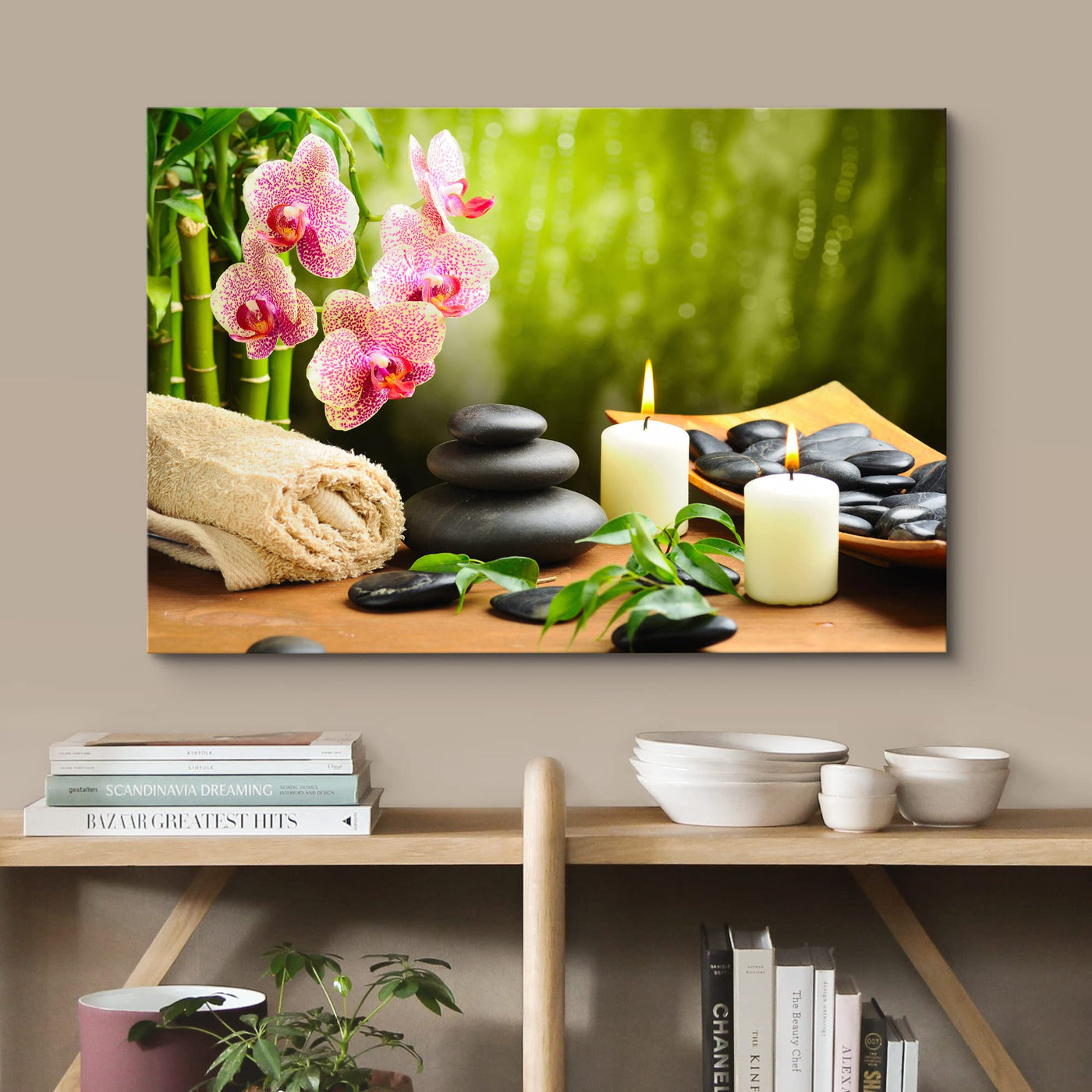 Wall26 Canvas Print Wall Art Meditation Yoga Massage Stones Pink Orchid Flowers Nature Wilderness Photography Realism Rustic Lan