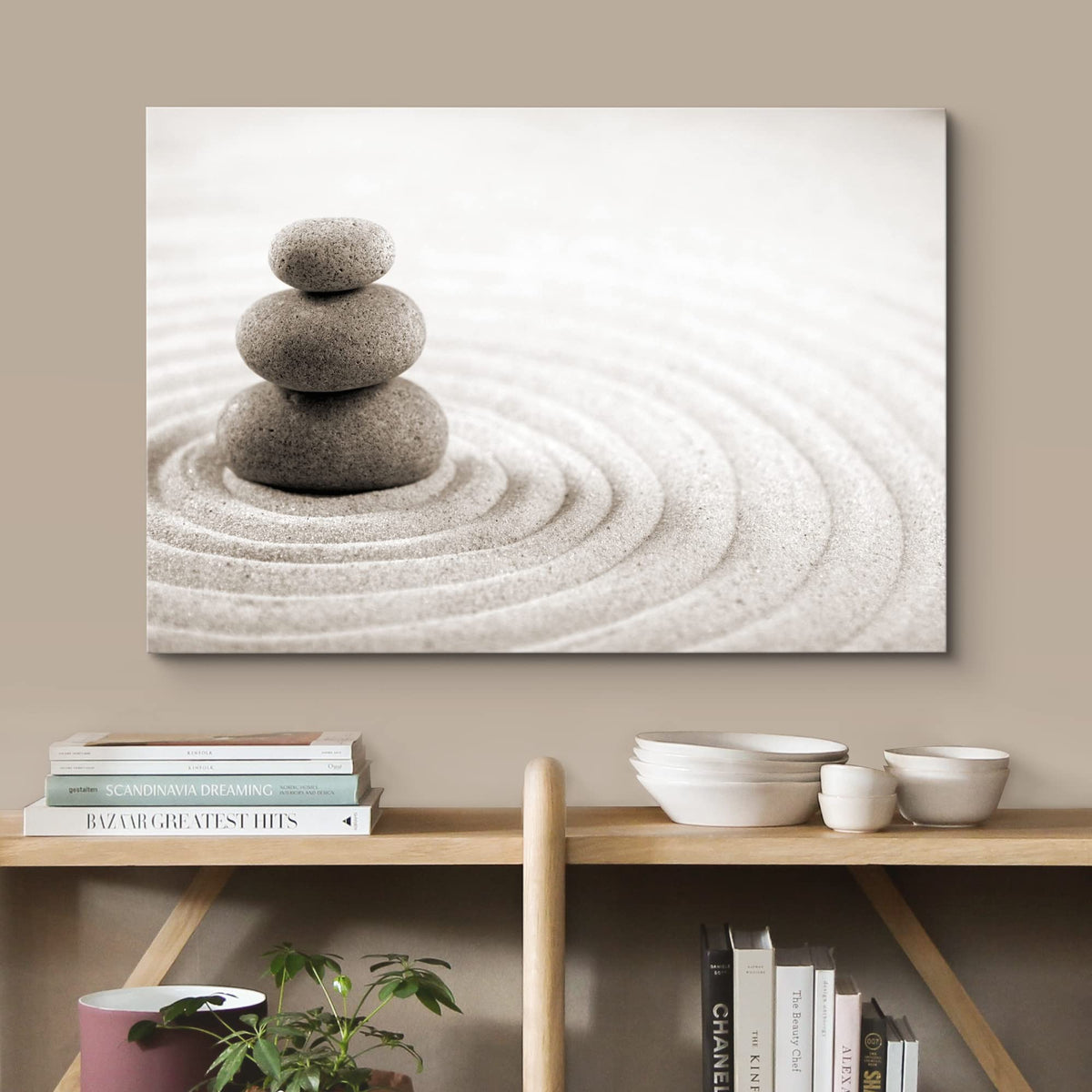 Wall26 Canvas Print Wall Art Rock Stack On Gray Zen Sand Garden Floral Nature Photography Realism Bohemian Scenic Relax/Calm Coo