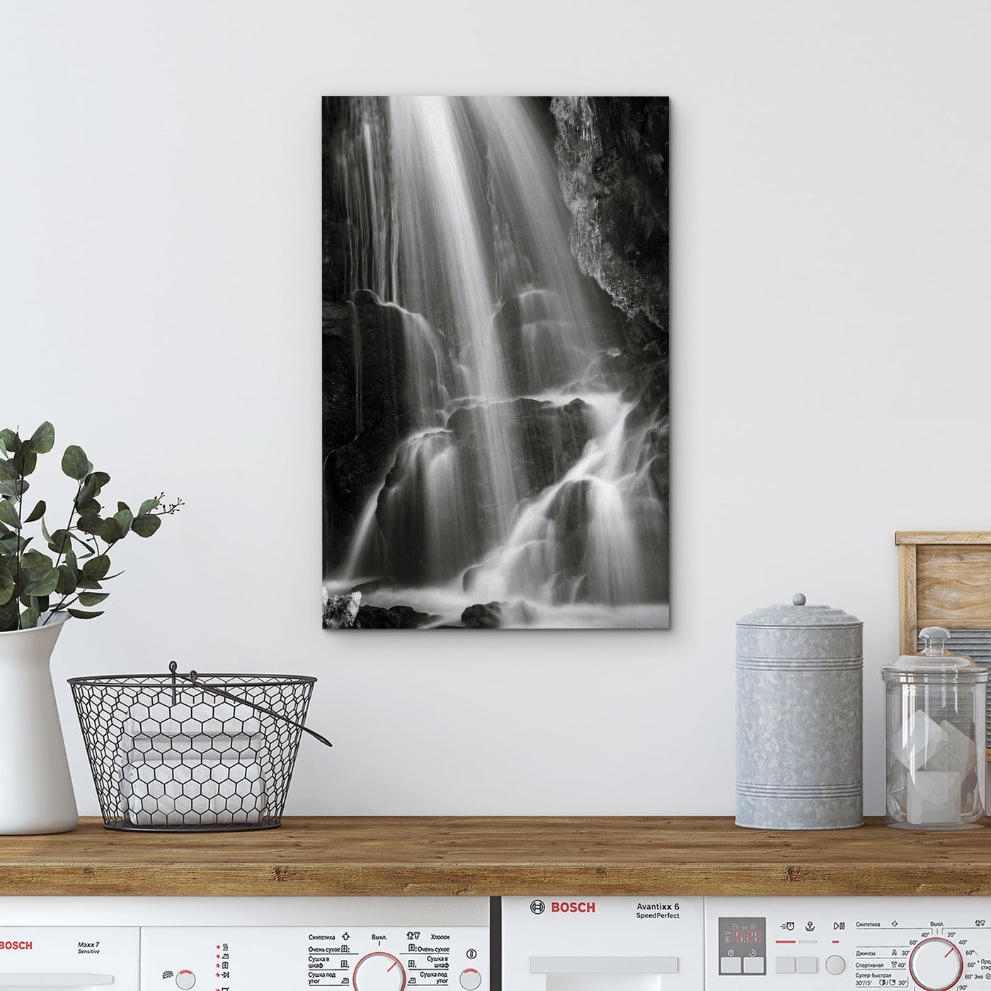 - Q: What themes does the wall26 Canvas Print feature? A: The canvas print features a serene black and white waterfall with animals, emphasizing realism and a rustic scenic landscape.