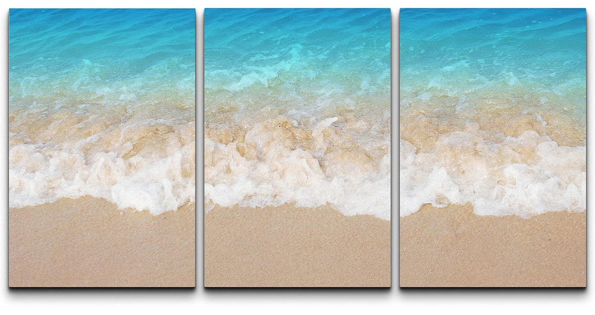 Wall26 Canvas Print Wall Art Set Blue Waves & Seafoam On Beach Shore Nature Wilderness Photography Realism Rustic Landscape Colo