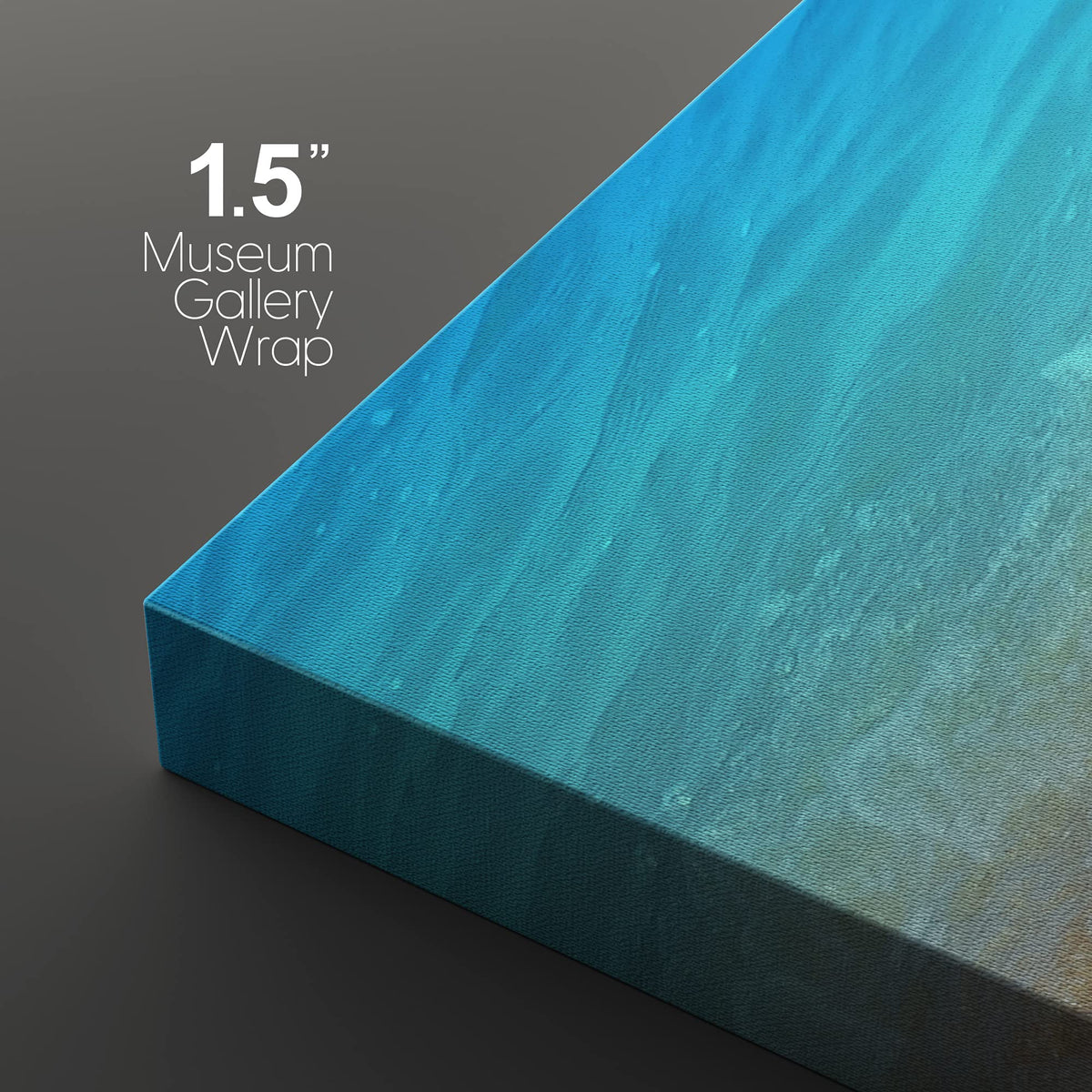 - Q: What style does this canvas art represent? A: This artwork features a realism style, depicting blue waves and seafoam on a beach shore.