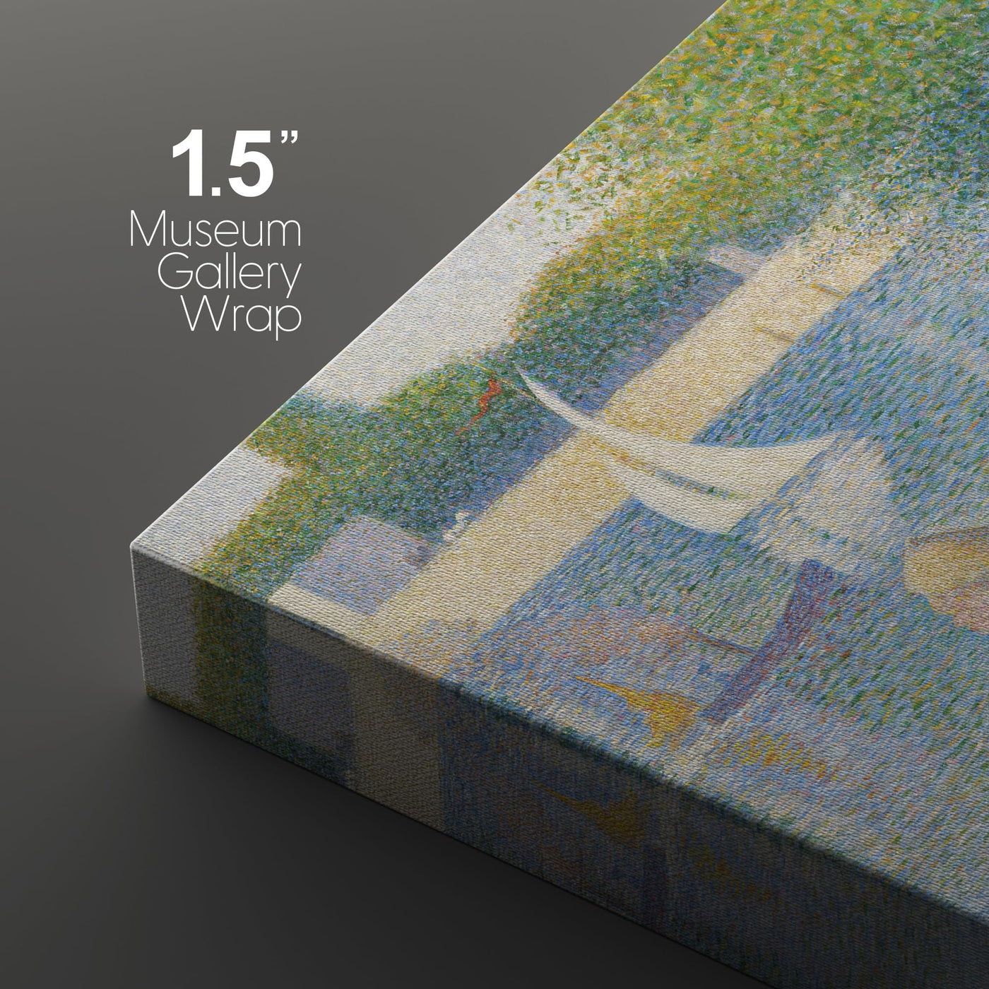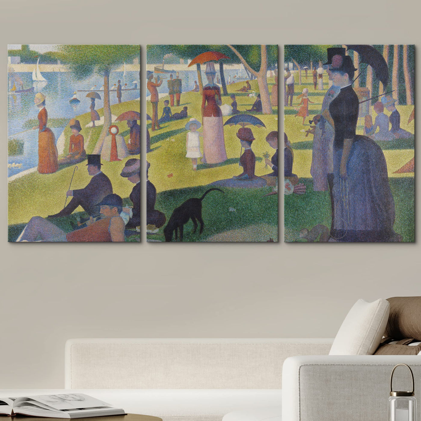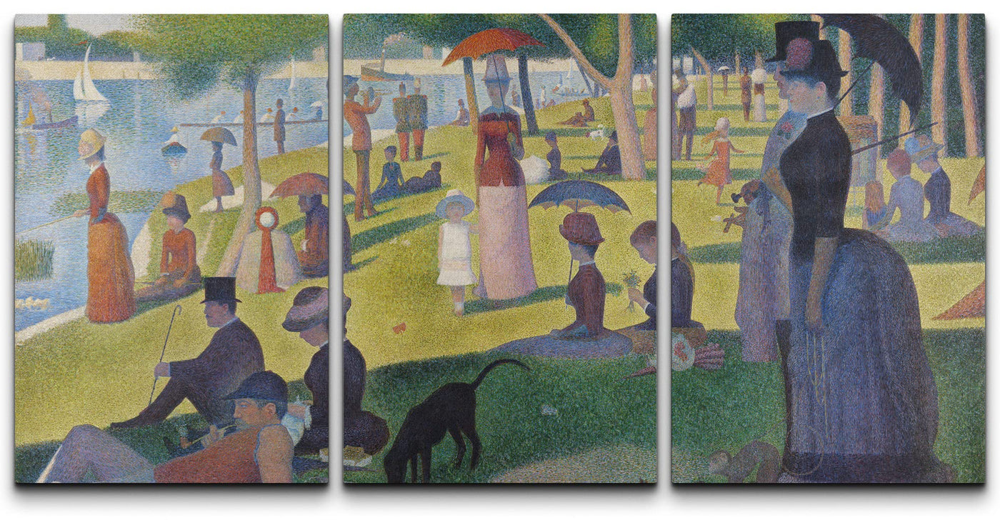 - Q: What is the style of the artwork? A: The artwork features 'La Grande Jatte' by Georges Seurat, a cultural historic oil painting in a scenic and colorful style.