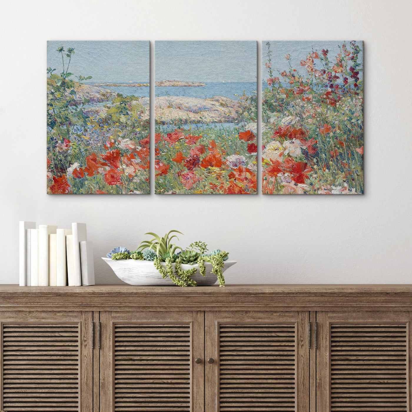 Wall26 Canvas Print Wall Art Set Watercolor Pastel Flower Field Coastal Landscape Nature Wilderness Illustrations Modern Art Dec