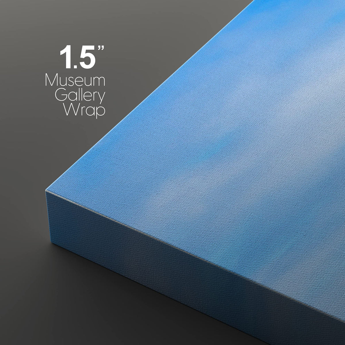 • Q: What is the profile of the canvas artwork? A: The artwork has a gallery-quality profile with 1.5 inch stretcher bars, enhancing its overall presentation.