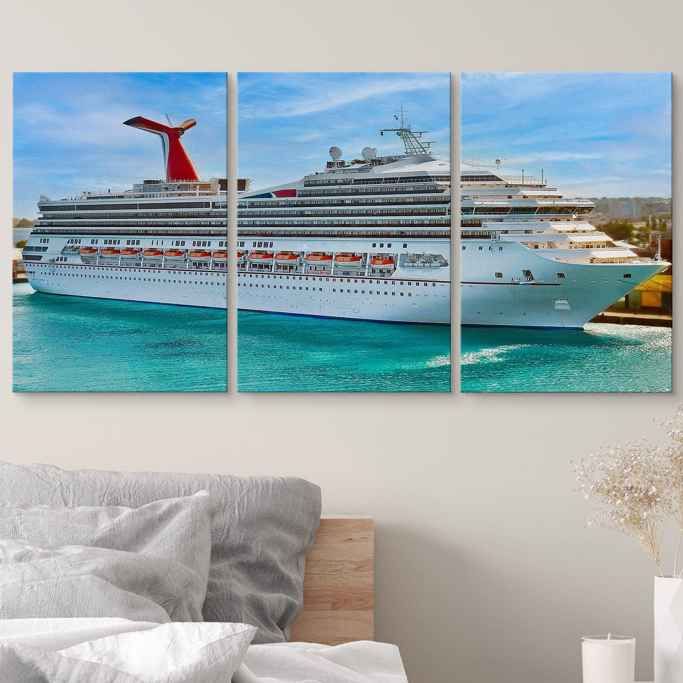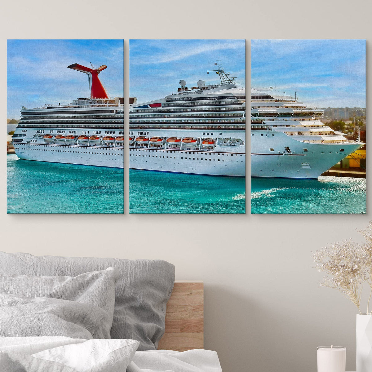 Wall26 Canvas Print Wall Art Set White & Red Cruise Ship In Coastal Dock Nature Ocean Photography Realism Nautical Scenic Colorf