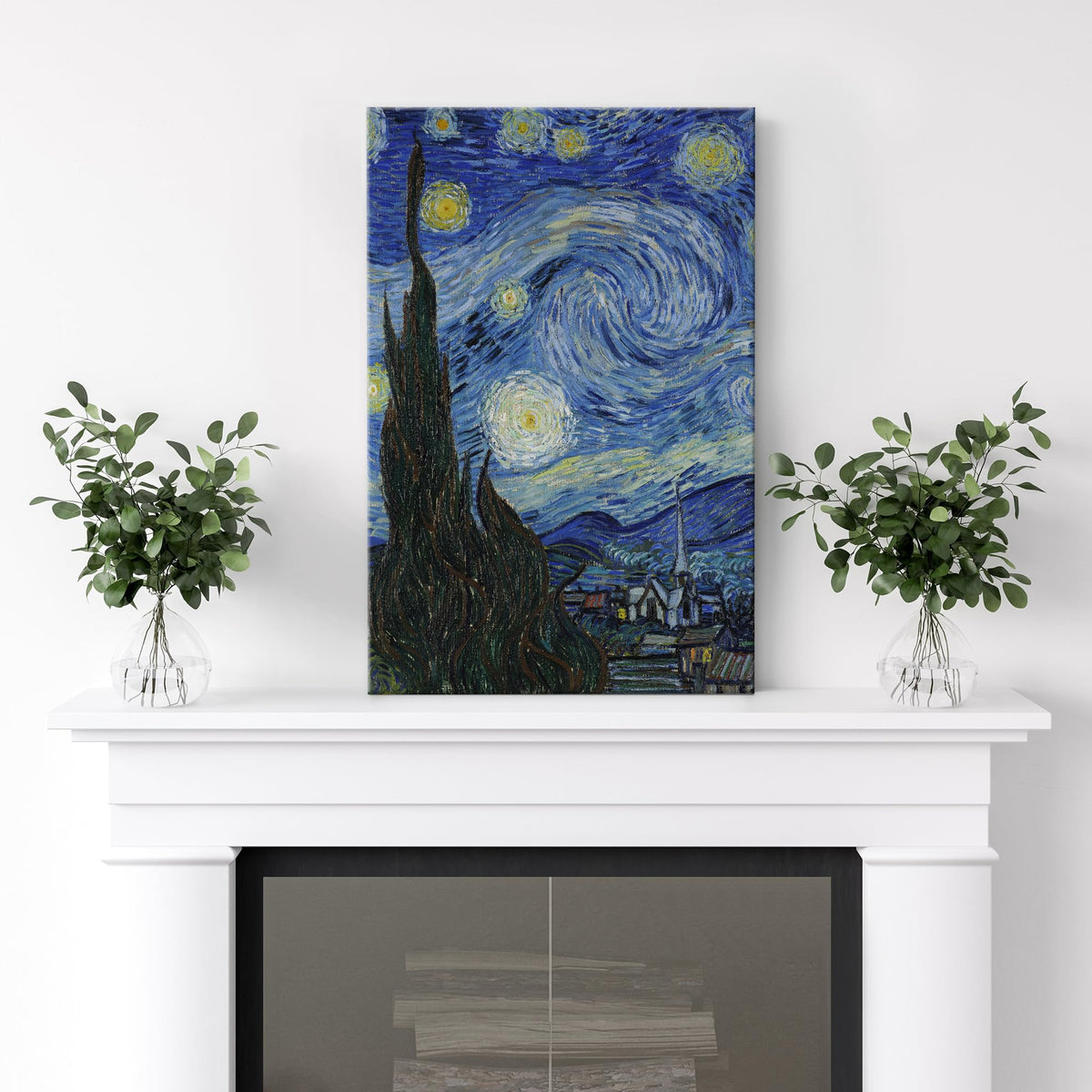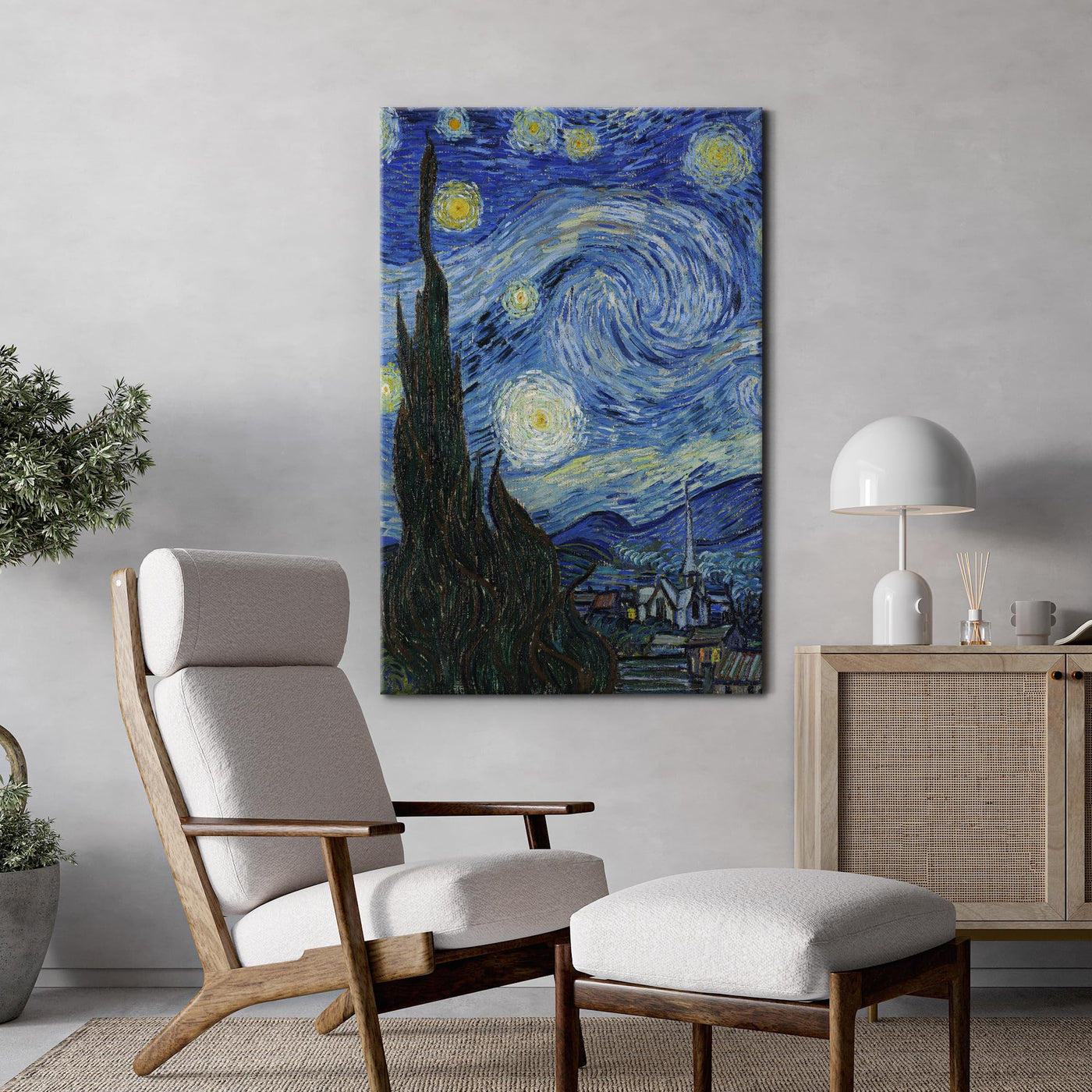- Q: What style does this canvas print depict? A: This canvas print features 'Starry Night' by Vincent Van Gogh, showcasing nature and wilderness illustrations.