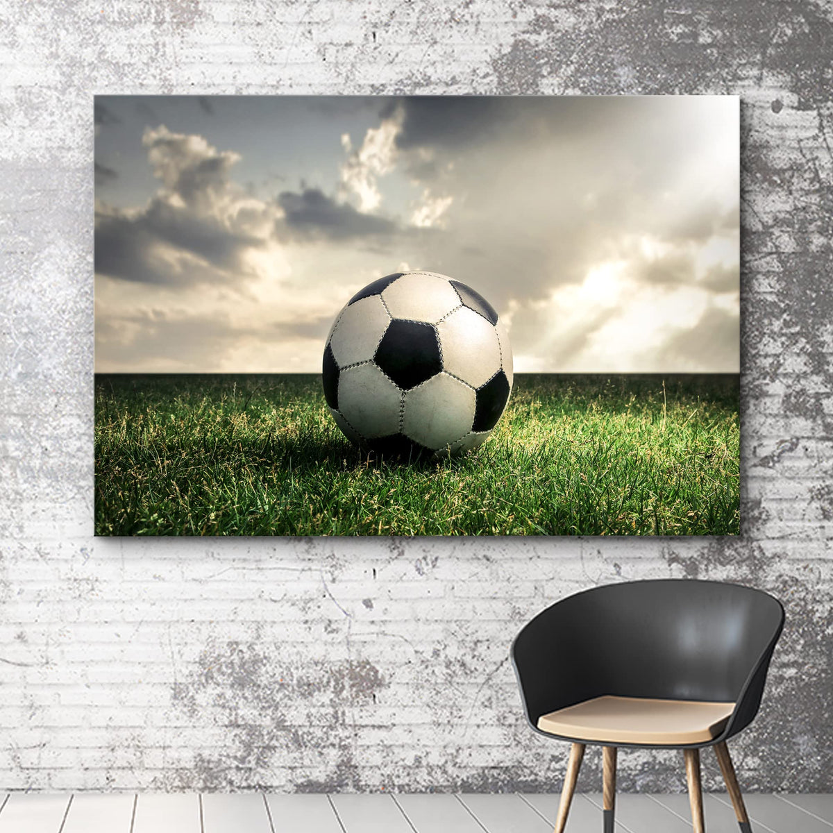 Wall26 Canvas Print Wall Art Sunlight Cloudy Sky Soccer Ball Green Field Sports & Fitness Athletes Photography Realism Boy'S Bed