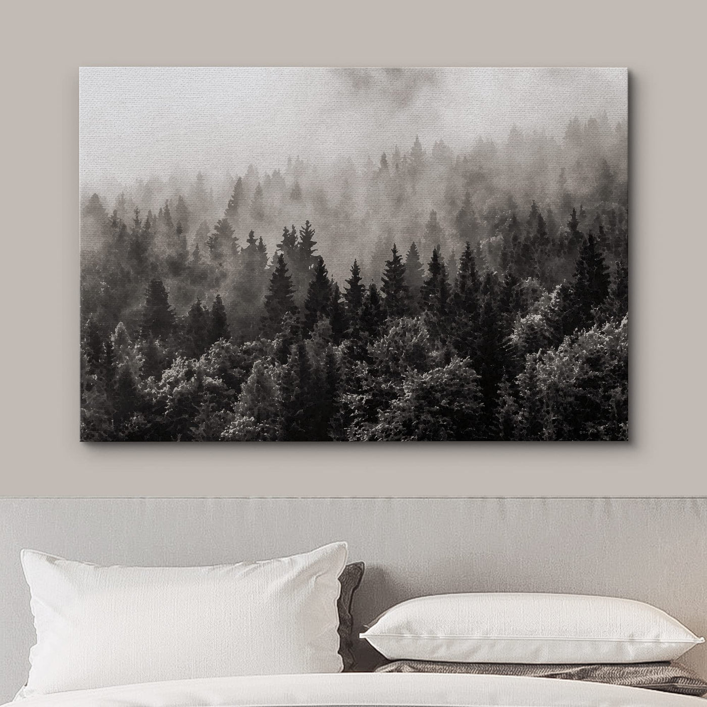 Wall26 Canvas Wall Art - Misty Forest In Black And White - Gallery Wrap Modern Home Art | Ready To Hang - 24X36 Inches