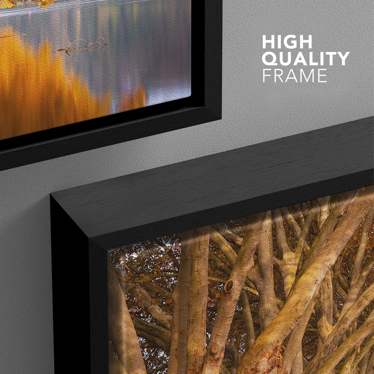 - Q: What style does this canvas print represent? A: This artwork features a realism style, showcasing a scenic landscape of an autumn forest and lake.