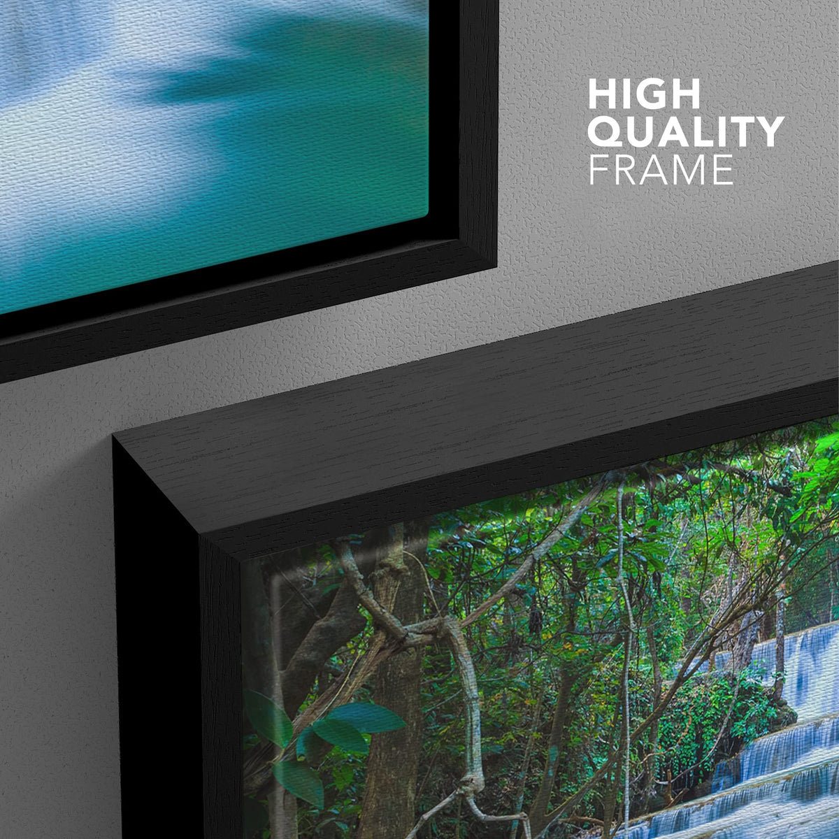 wall26 Framed Canvas Print Wall Art Cascading Forest Waterfall Landscape Nature Wilderness Photography Modern Art Rustic Scenic Colorful Multicolor for Living Room Bedroom Office - 24''x36'' Black