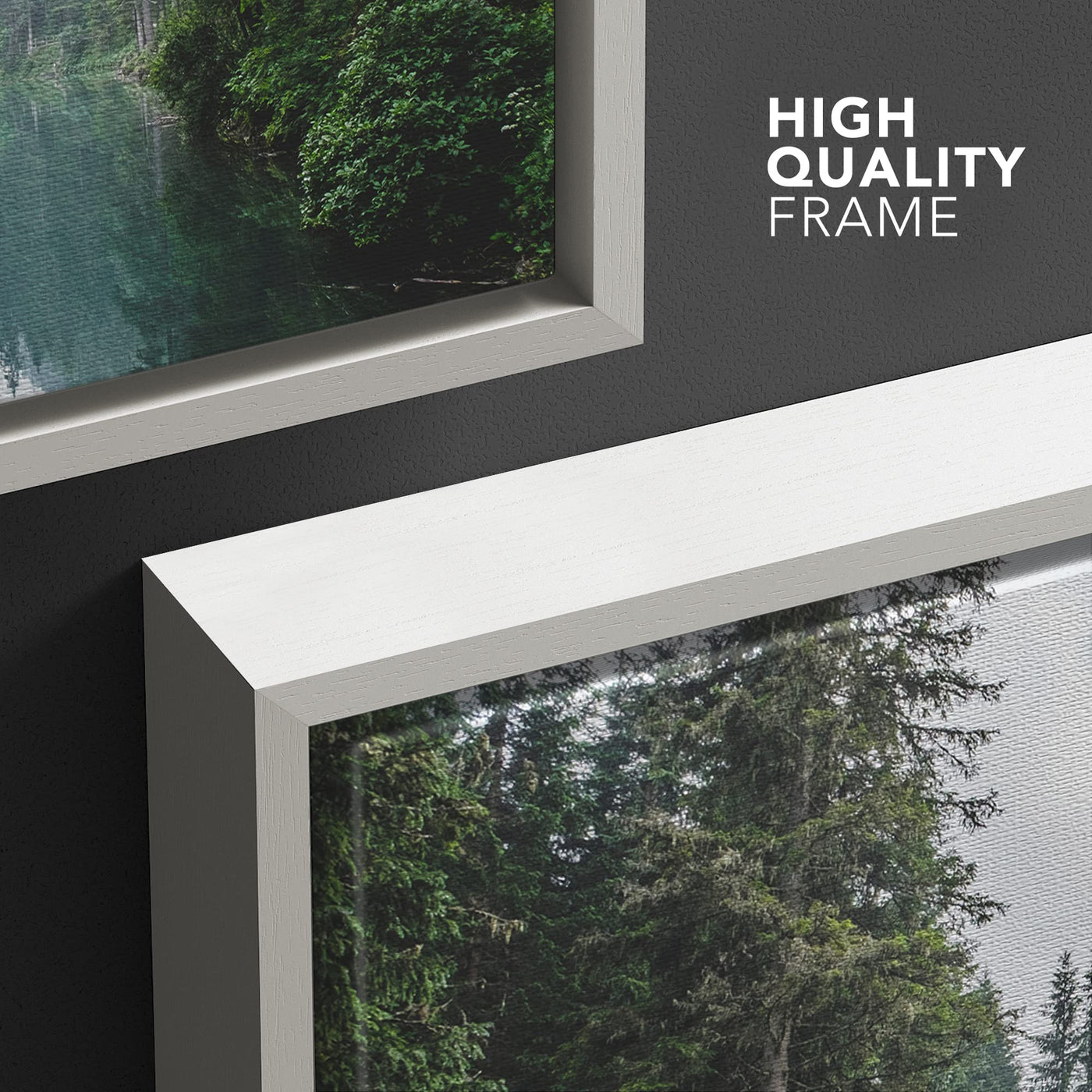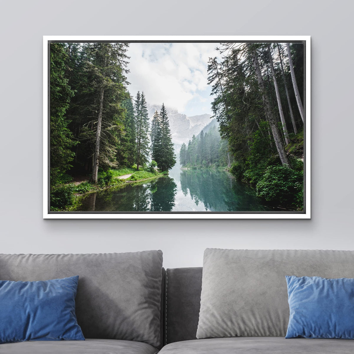 wall26 Framed Canvas Print Wall Art Fall Green Forest with Lake Reflection Nature Wilderness Photography Modern Art Rustic Scenic Colorful Multicolor for Living Room Bedroom Office - 24''x36'' White