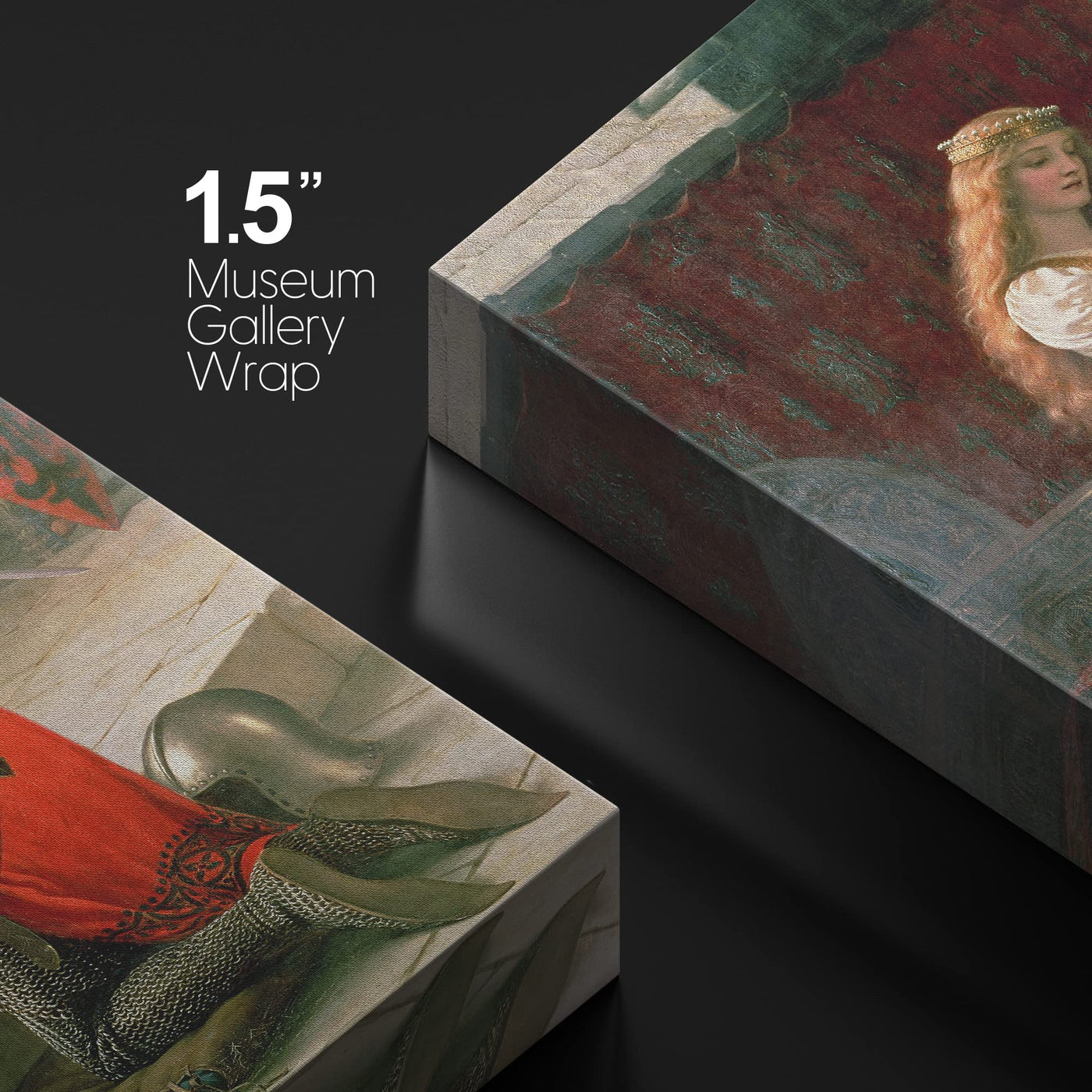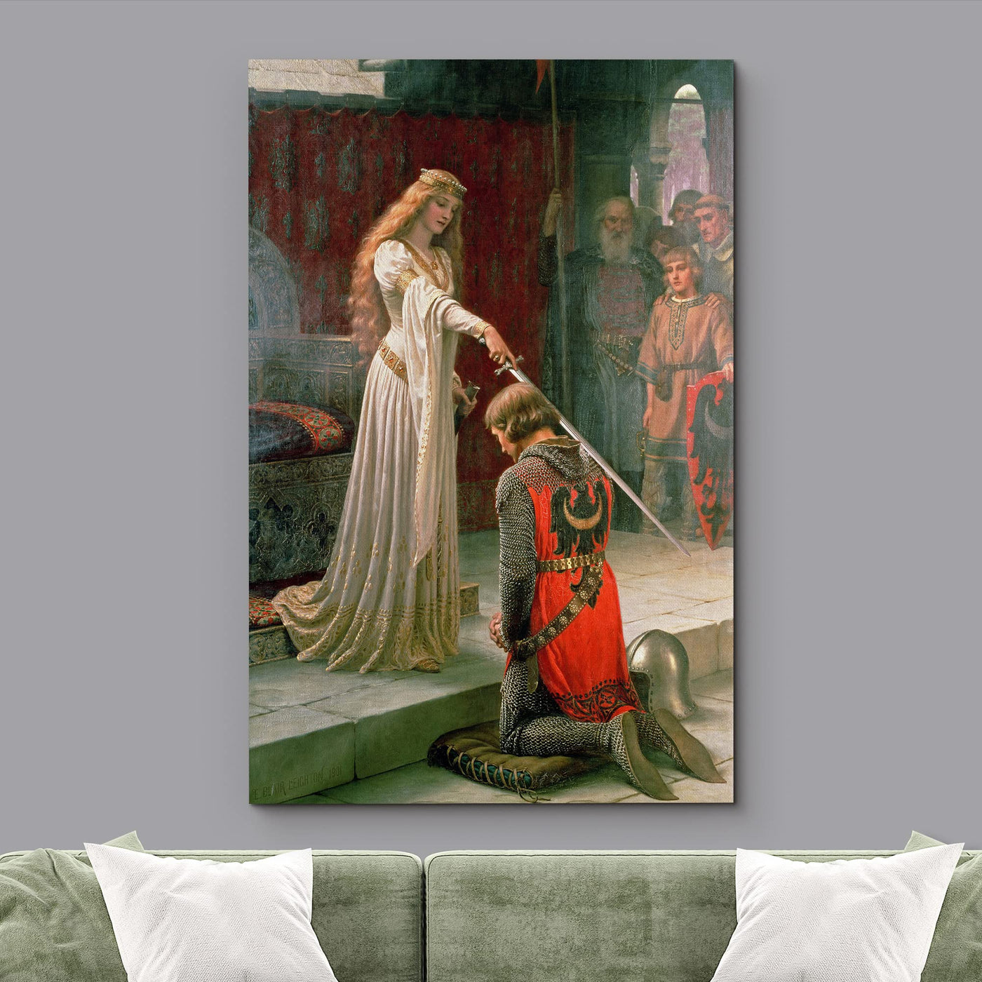 - Q: What kind of artwork is depicted in this canvas print? A: The canvas print features 'The Accolade' by Edmund Leighton, showcasing traditional nature wilderness illustrations.