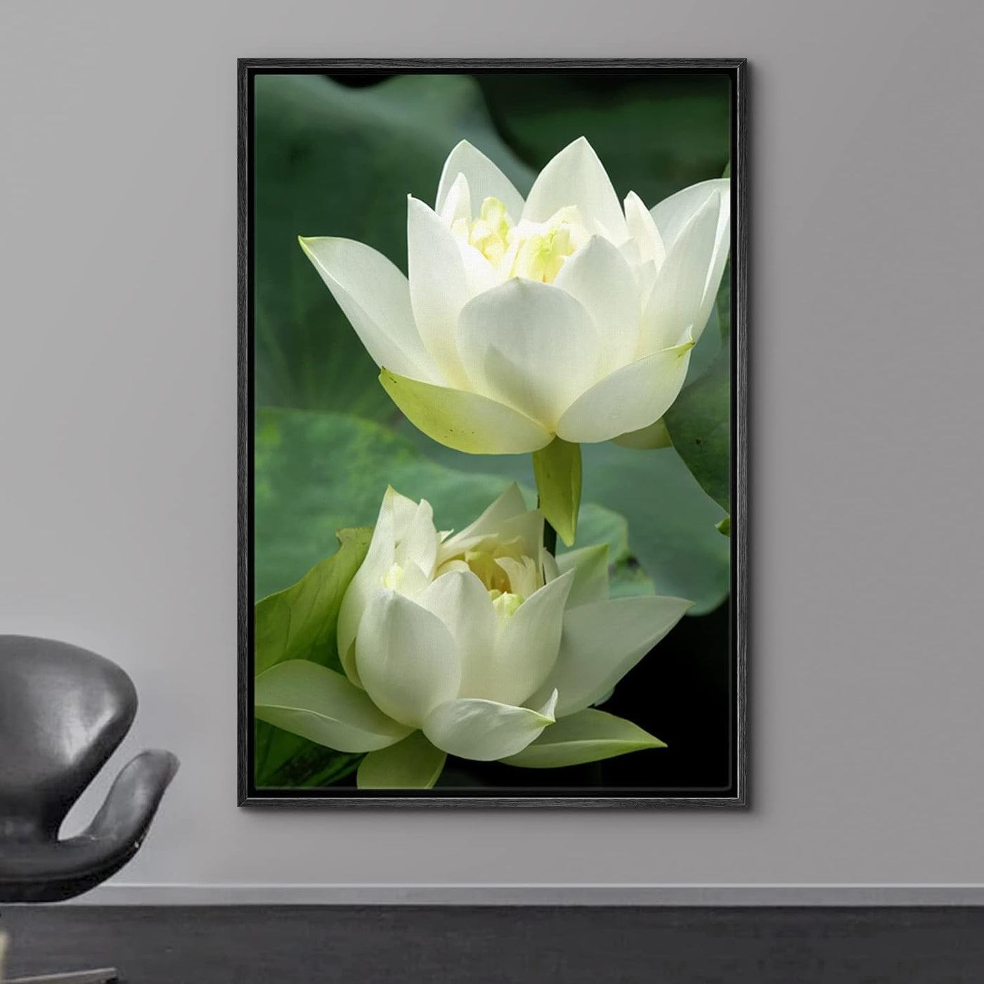 Wall26 Framed Canvas Prints Wall Art - White Lotus Flower And Green Lotus Leaf | Modern Wall Decor/Home Art Stretched Gallery Wr