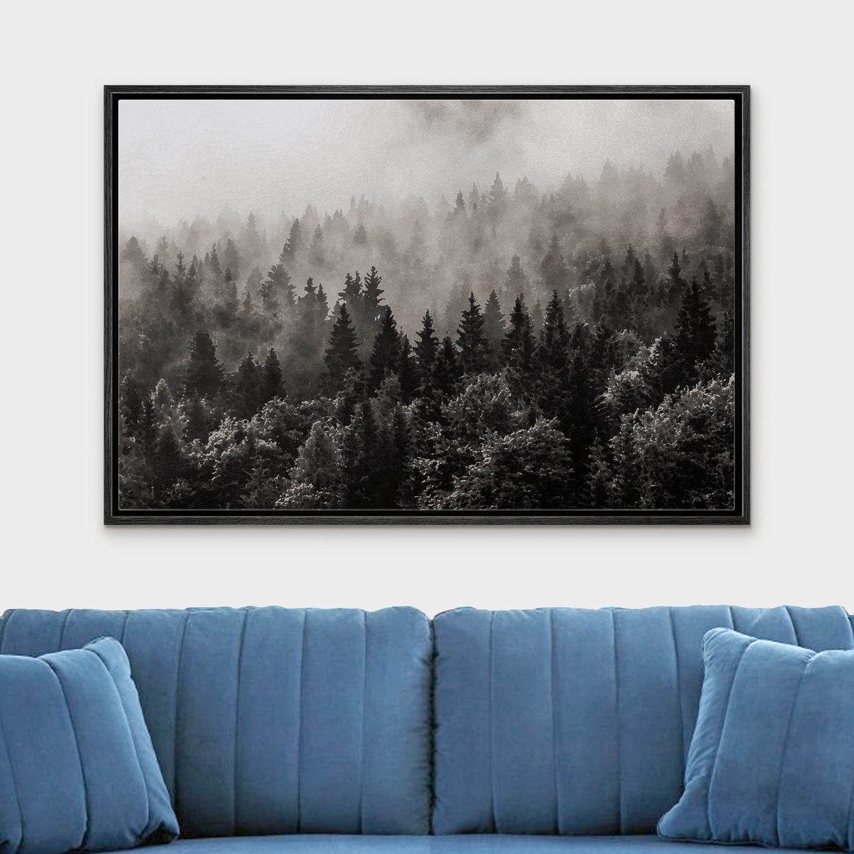 - Q: What style does the wall26 canvas art feature? A: The wall26 canvas art features a modern black and white design of a misty forest.