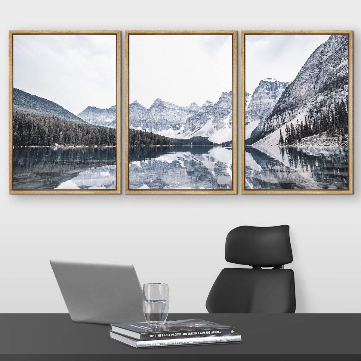 Wall26 Framed Canvas Wall Art Print Set Snowy Winter Mountain And Lake Landscape Nature Wilderness Photography Modern Rustic Col