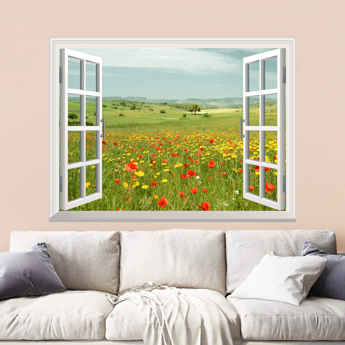 wall26 Removable Wall Sticker/Wall Mural - Beautiful Spring Field with Wild Flowers | Creative Window View Wall Decor - 36 Inchx48 Inch