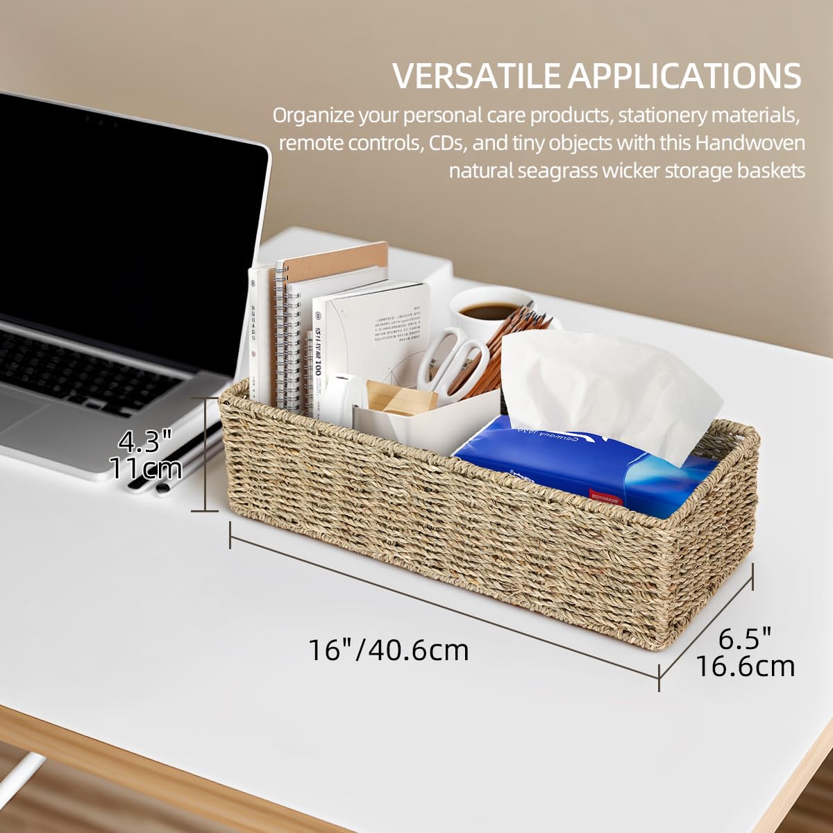 Weavelyrics [2-Pack] Seagrass Storage Baskets, Rectangle Wicker Containers, Wicker Toilet Basket Tank Topper, Handwoven Natural