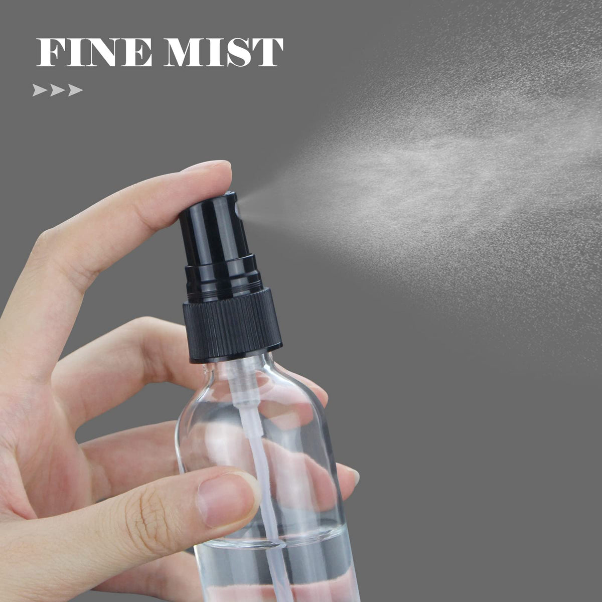 - Q: What accessories are included with the spray bottle set? A: The set includes four 4-ounce glass spray bottles, four black mist sprayers, one funnel, and one dropper, providing various accessories to meet different needs.