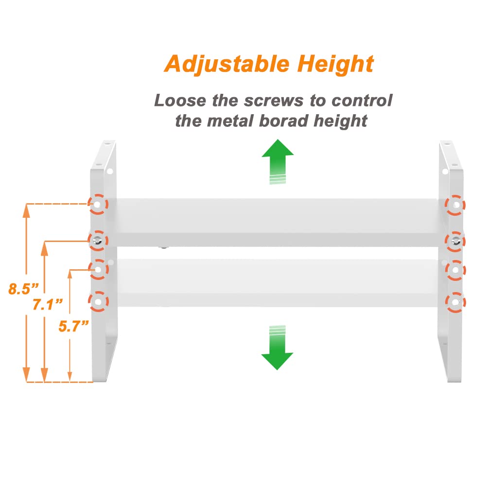 • Q: Can this shelf be adjusted for different heights? A: Yes, the metal plate of the pantry shelves is adjustable. You can control the height by loosening or tightening the screws on both sides of the shelf organizer.
