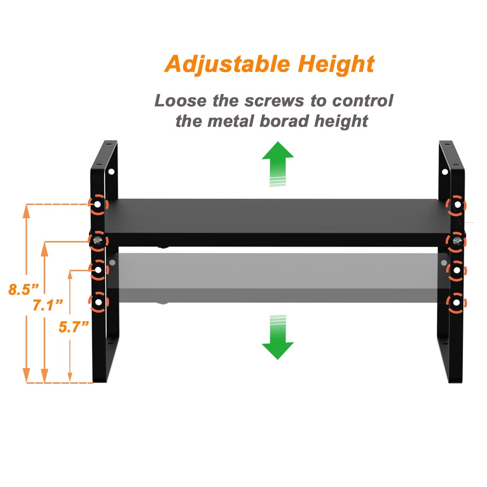 - Q: How do I adjust the height of the metal plate in the organizer? A: To adjust the height of the metal plate, simply loosen or tighten the screw located on the shelf organizer. There are four holes available for height adjustment.