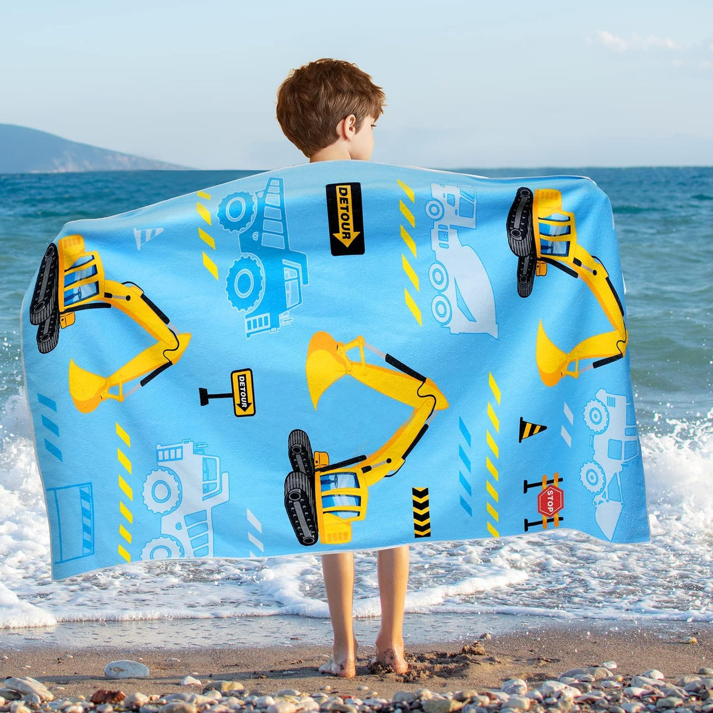 • Q: What is the design of the towel? A: The towel features a fun truck print, making it appealing to kids who love construction vehicles.