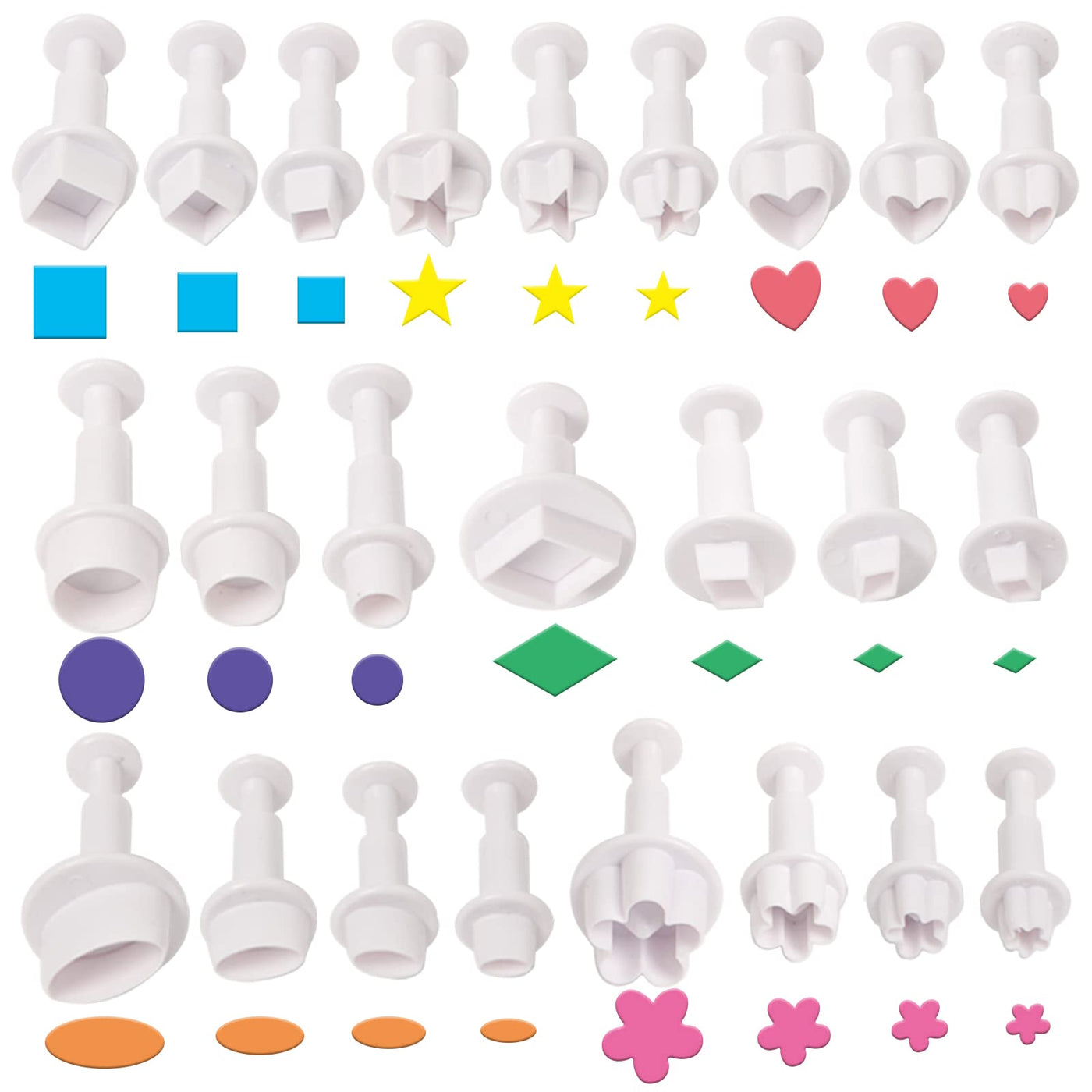 Wexpw 24 Pcs Cookie Cutters, Fondant Cake Cookie Plunger Cutter, Mini Plastic Biscuit Plunger Fondant Decorating Mold, Heart/Squ