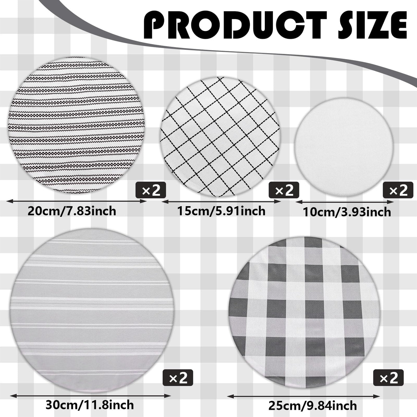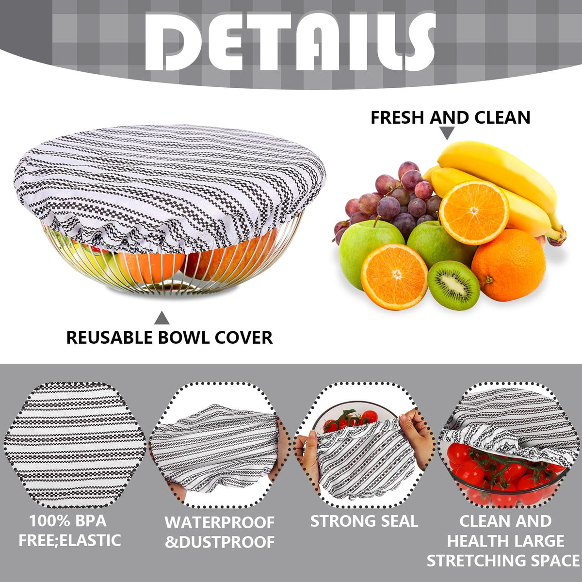 Whaline 10Pcs Bowl Covers Reusable In 5 Size Stretch Cloth Fabric Dish Cover Farmhouse Plaid Gray Ticking Stripe Lids For Food F