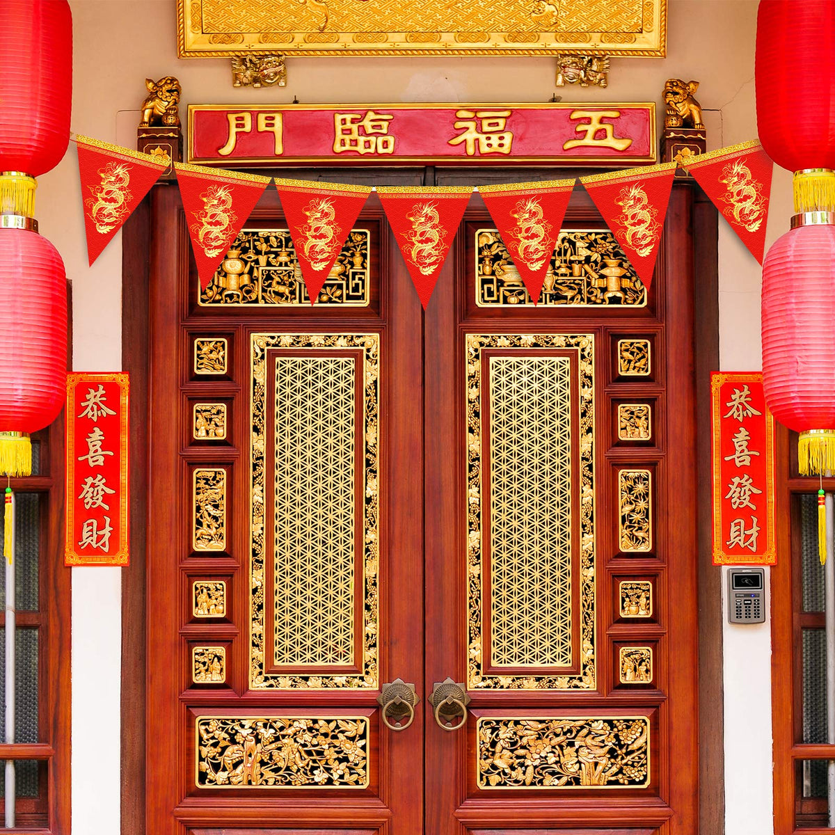 Whaline 20Pcs Chinese New Year Dragon Pennant Banner 2024 Spring Festive Triangle Bunting Flag Pre-Assembled Garland For Chinese
