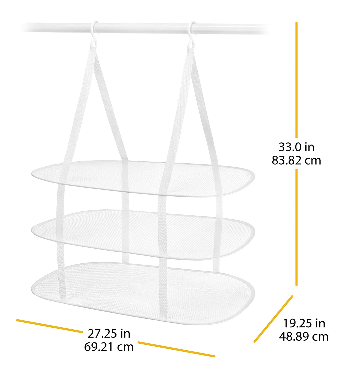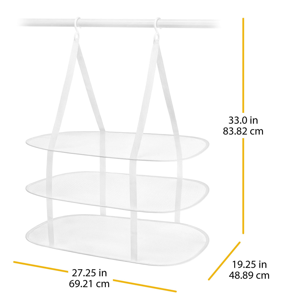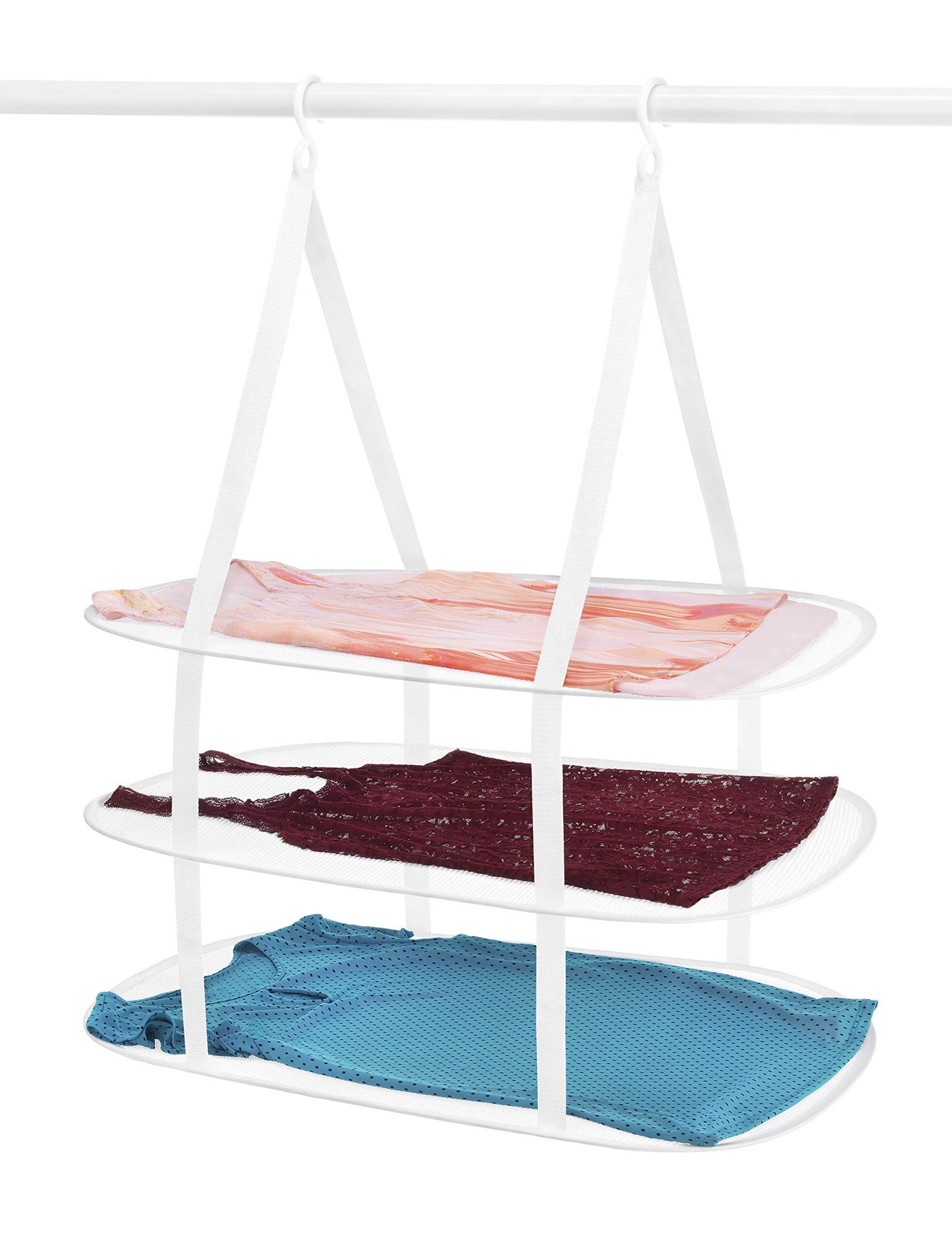 • Q: Is this drying rack durable and sturdy? A: Yes, it includes heavy-duty hanging straps and durable hooks, which allow it to hang securely on a closet or shower rod.