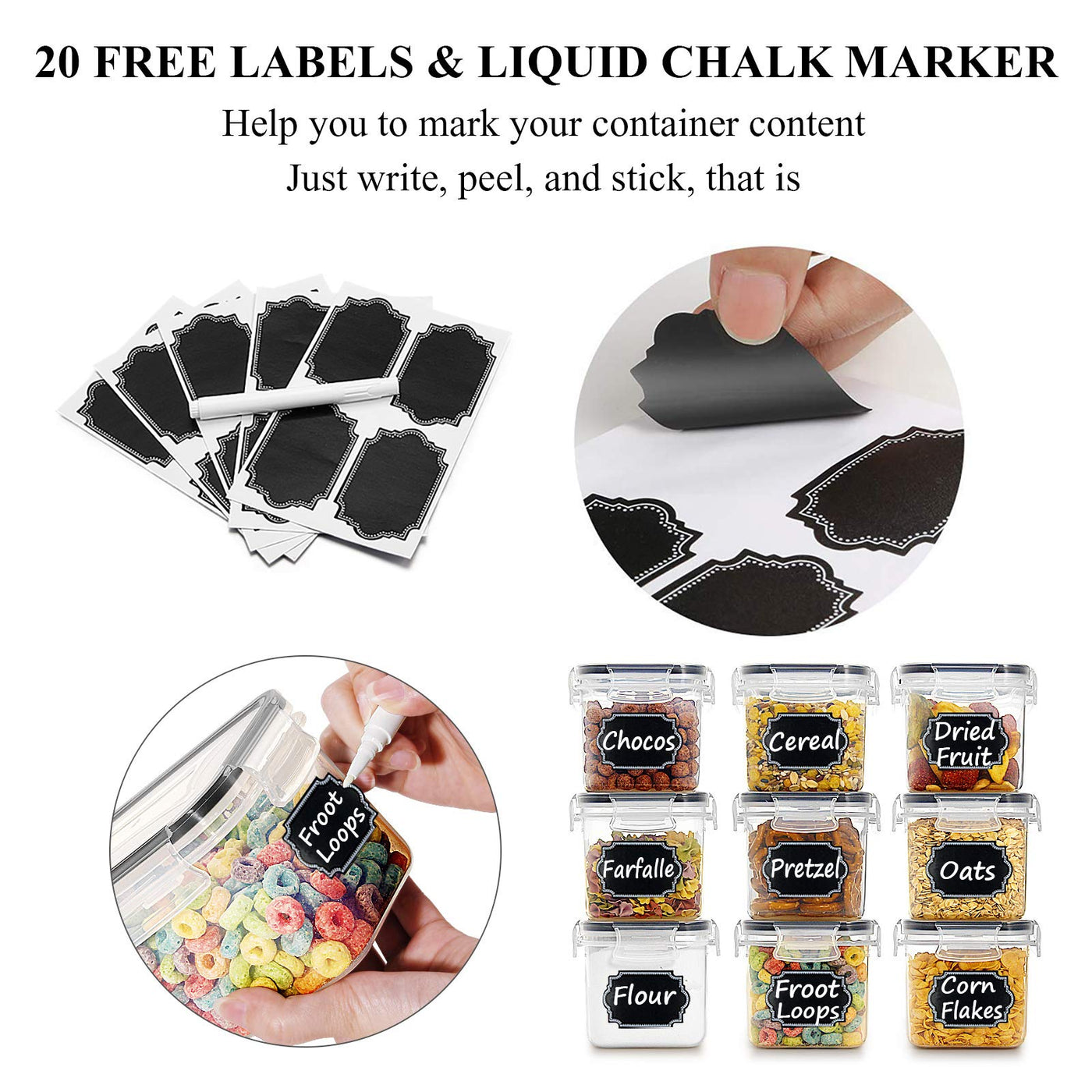 - Q: Do the containers come with labels? A: Yes, the set includes 20 chalkboard labels and 1 chalk marker to help you organize your kitchen.