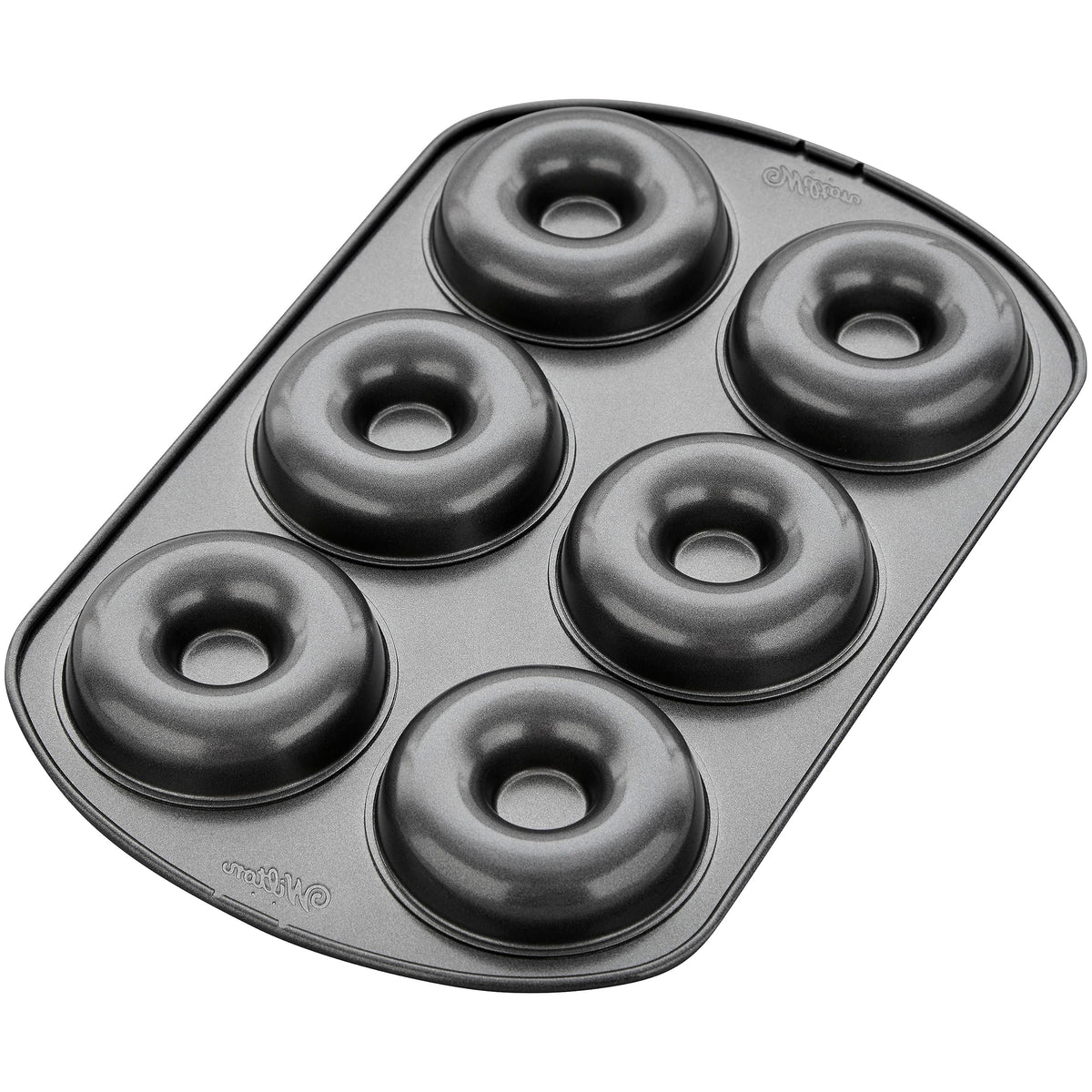 Wilton 6-Cavity Doughnut Baking Pan, Makes Individual Full-Sized 3 3/4'' Donuts Or Baked Treats, Non-Stick And Dishwasher Safe,