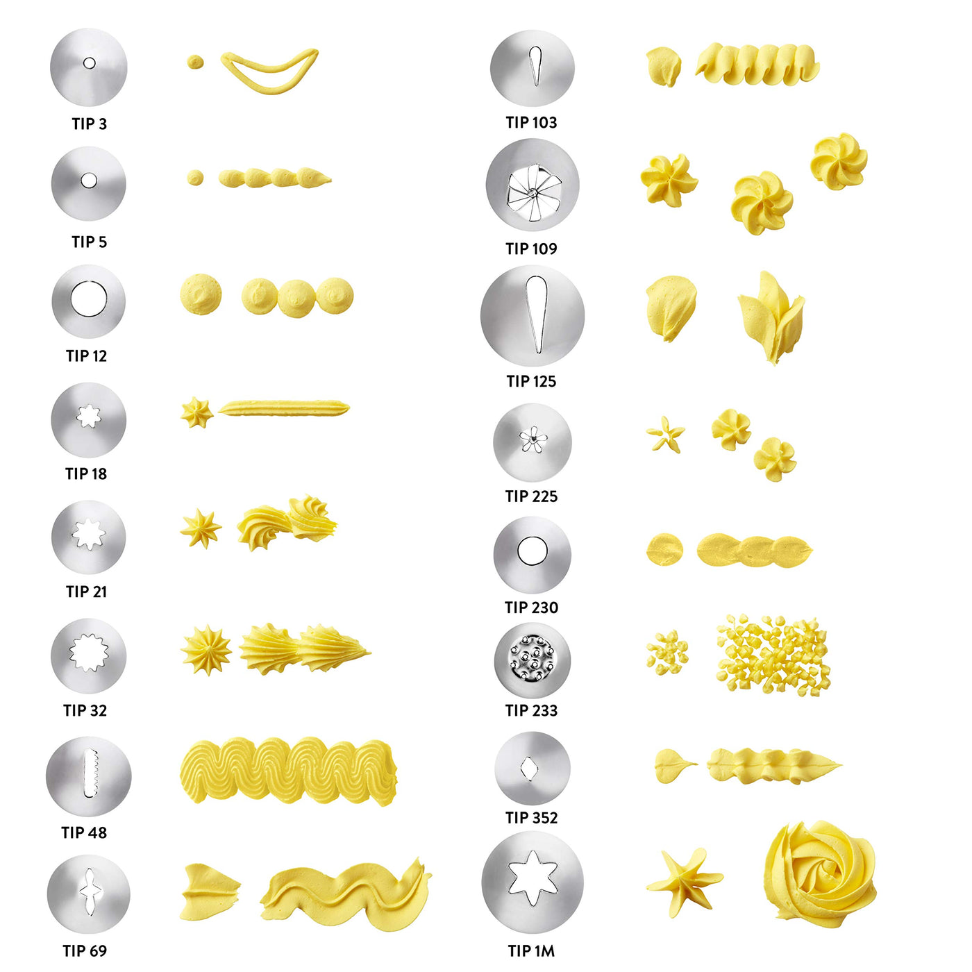 • Q: How do I clean the stainless steel decorating tips? A: The set includes a tip cleaning brush that makes it easy to clean the stainless steel tips after use. Hand washing is recommended for maintaining their quality.