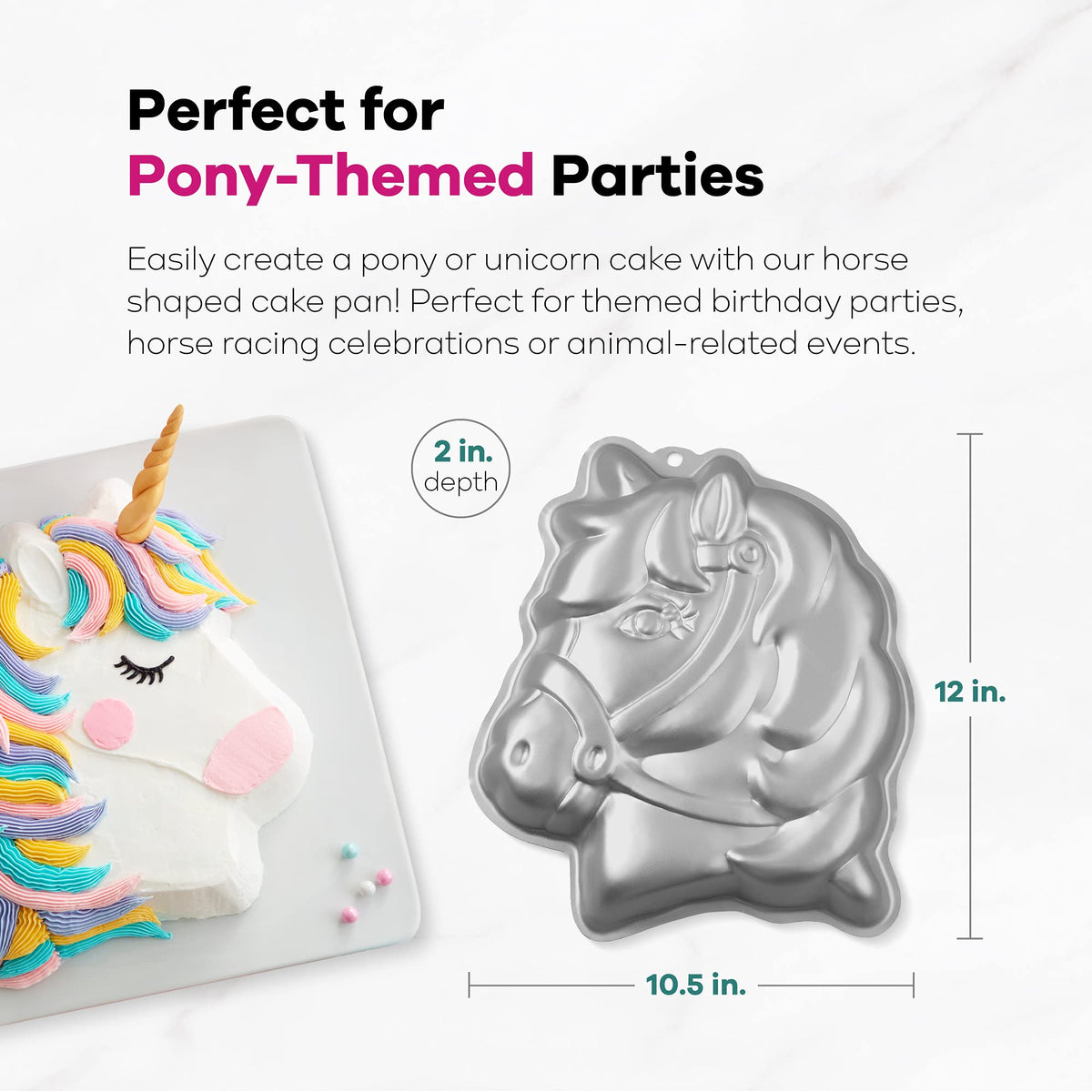 • Q: What types of cakes can I make with this pan? A: You can create playful pony cakes, unicorn cakes, or use it as a centerpiece for themed celebrations.