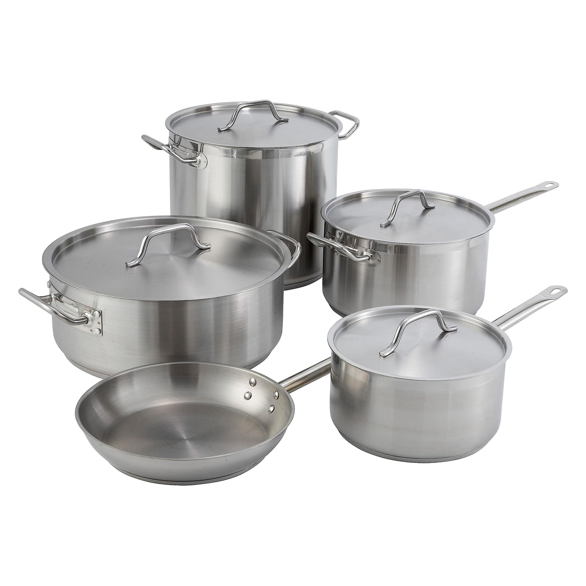 • Q: What material is the fry pan made of? A: The fry pan is made from heavyweight 18/8 stainless steel, designed for durability in commercial foodservice environments.