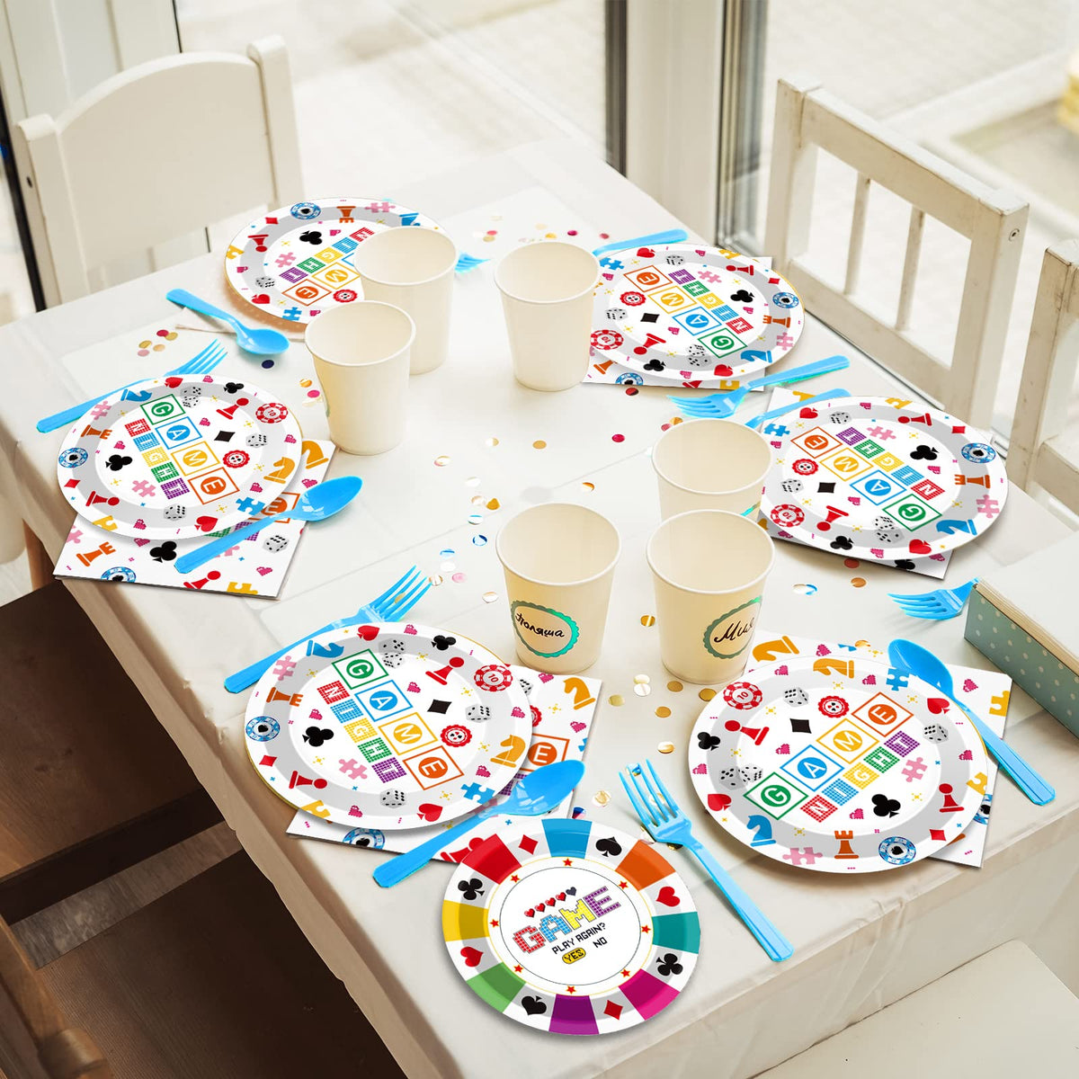 Wiooffen 96 Pcs Family Game Night Party Supplies Gaming Party Decoration For Birthday Party Video Game Party Tableware Set Kids