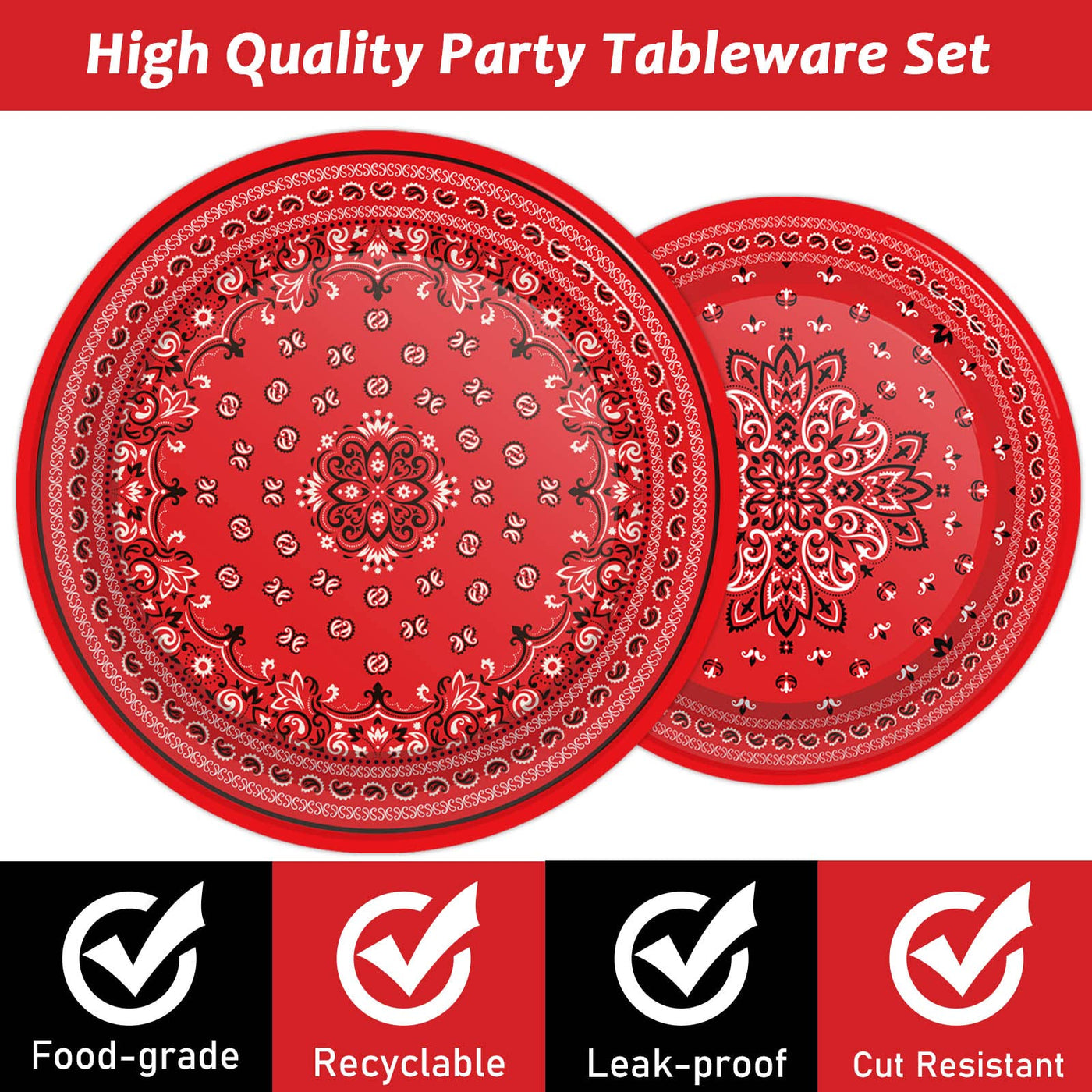 - Q: Are the designs on the plates and napkins fade-resistant? A: Yes, the patterns and colors on the bandana western theme plates and napkins are well-printed and fade-resistant, ensuring a vibrant look for your party.