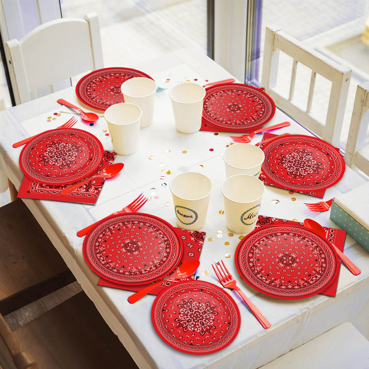 - Q: Is the set suitable for children's parties? A: Yes, this bandana western party supplies set is perfect for children's parties and can accommodate up to 24 guests.