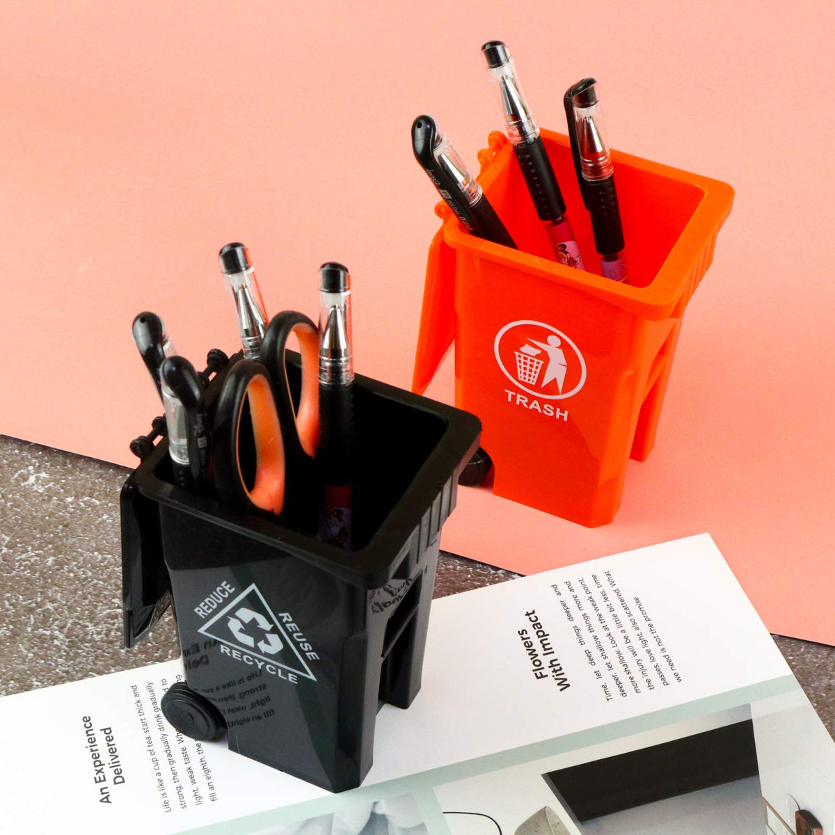 Wiosi Mini Garbage Trash Pen Holder For Desk And Tiny Recycle Bin Pencil Holder Black & Orange, Pack Of 2 - Storage For Pencil &