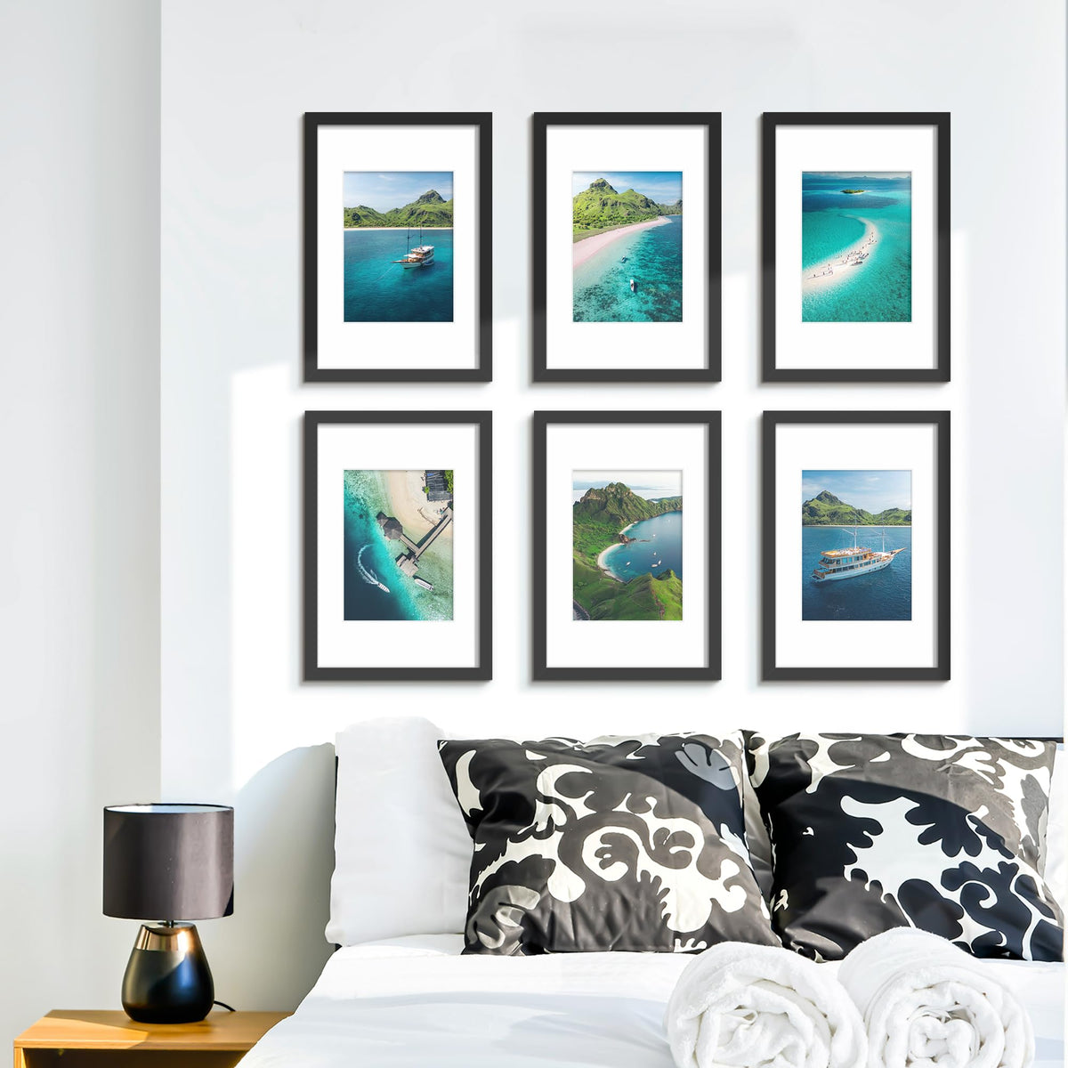 Wiscet 8x12 Picture Frame Set of 9, Display Pictures 6x8 with Mat or 8x12 Without Mat, Photo Frame for Wall Mounting or Tabletop